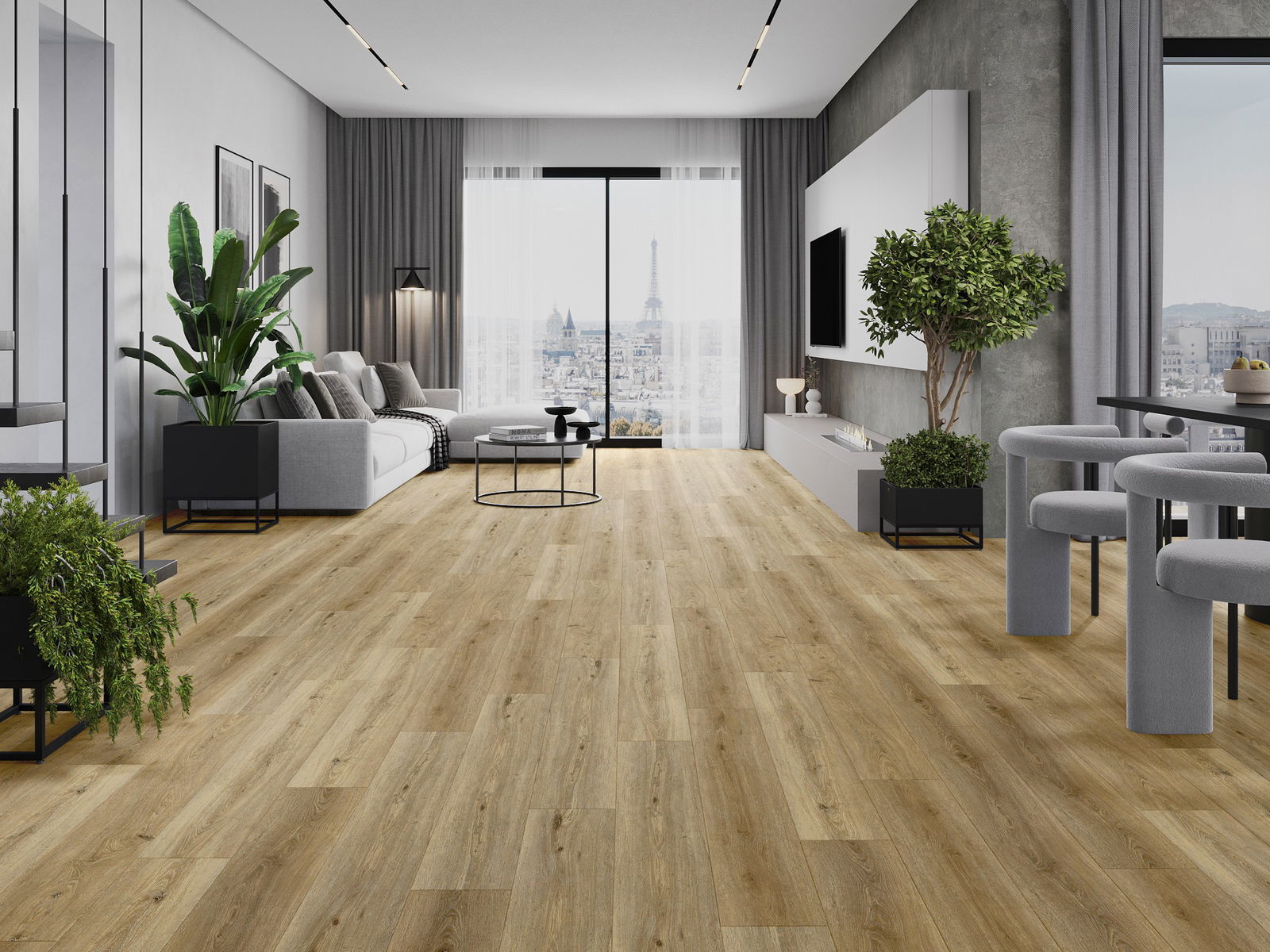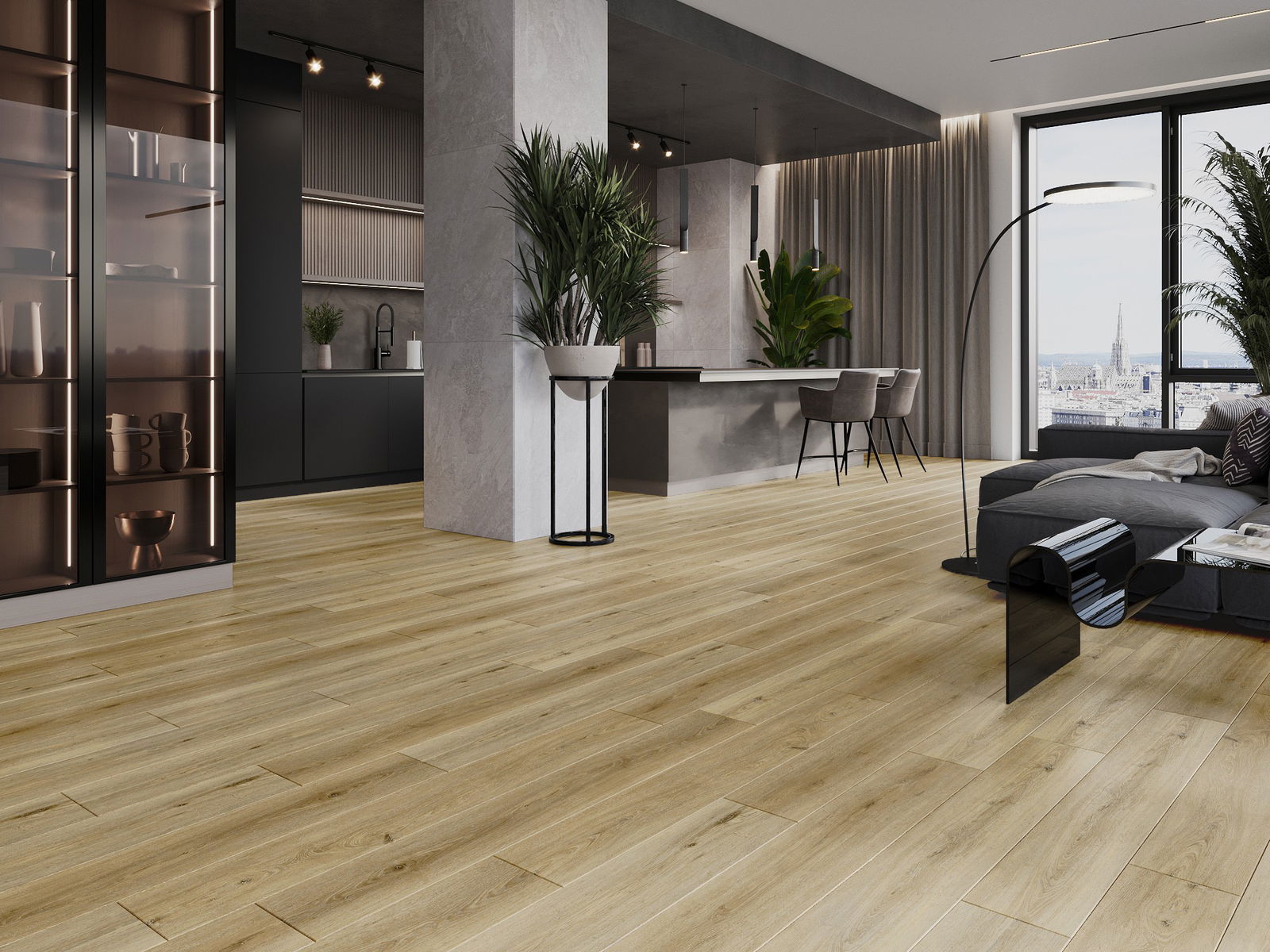 Панелите имат 4-странна фуга - всяка страна е обработена така, че при нареждане да се образува V-образно съединение. Този дизайн придава на пода по-изразена структура, което му добавя дълбочина и естетически характер. Този ефект е особено ценен в съвременните интериори, където детайлите подчертават уникалния изглед на вътрешността.