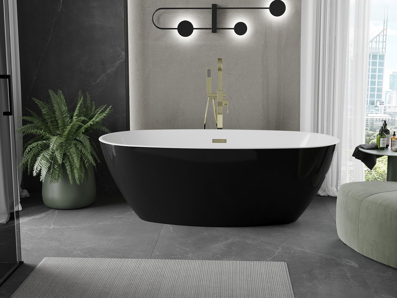 Mexen Eris свободностояща вана 180 x 95 cm, бяла/черна, преливна златна