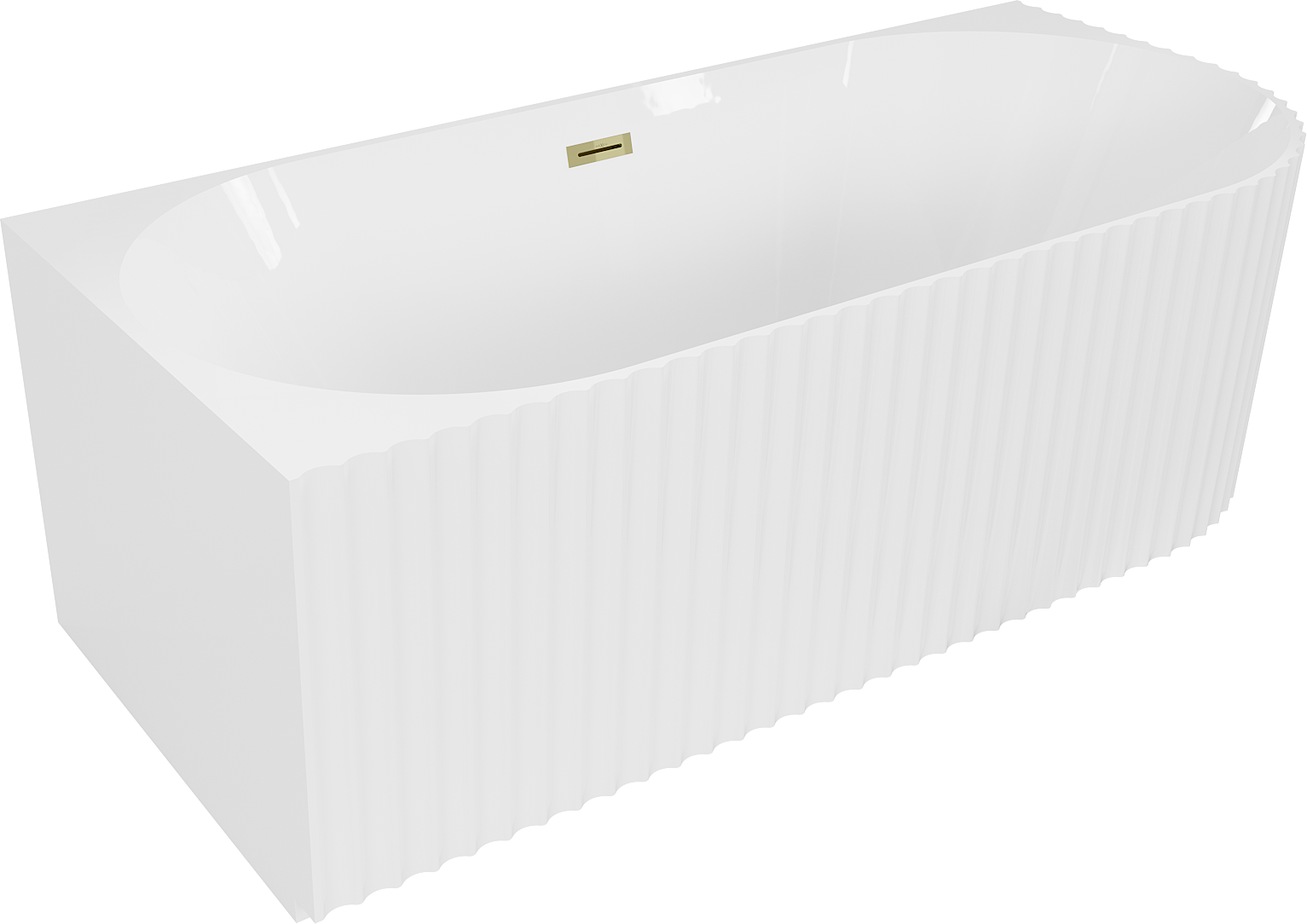 Mexen Gia свободно стояща ъглова оребрена вана лява 150 x 75 см, бял гланц, златен преливник - 52701507500L-50