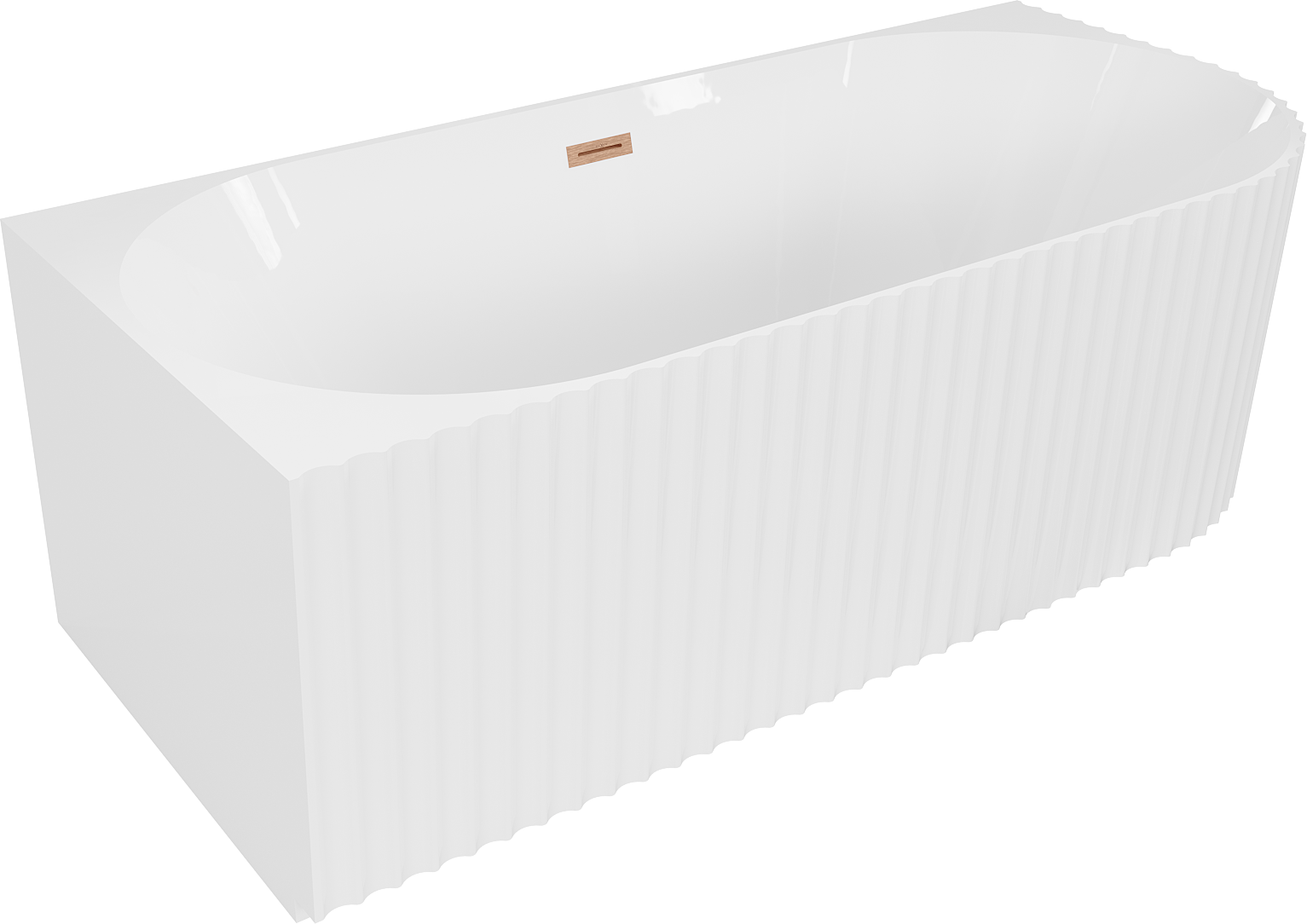 Mexen Gia свободно стояща ъглова оребрена лява вана 150 x 75 см, бял гланц, меден матов преливник - 52701507500L-65
