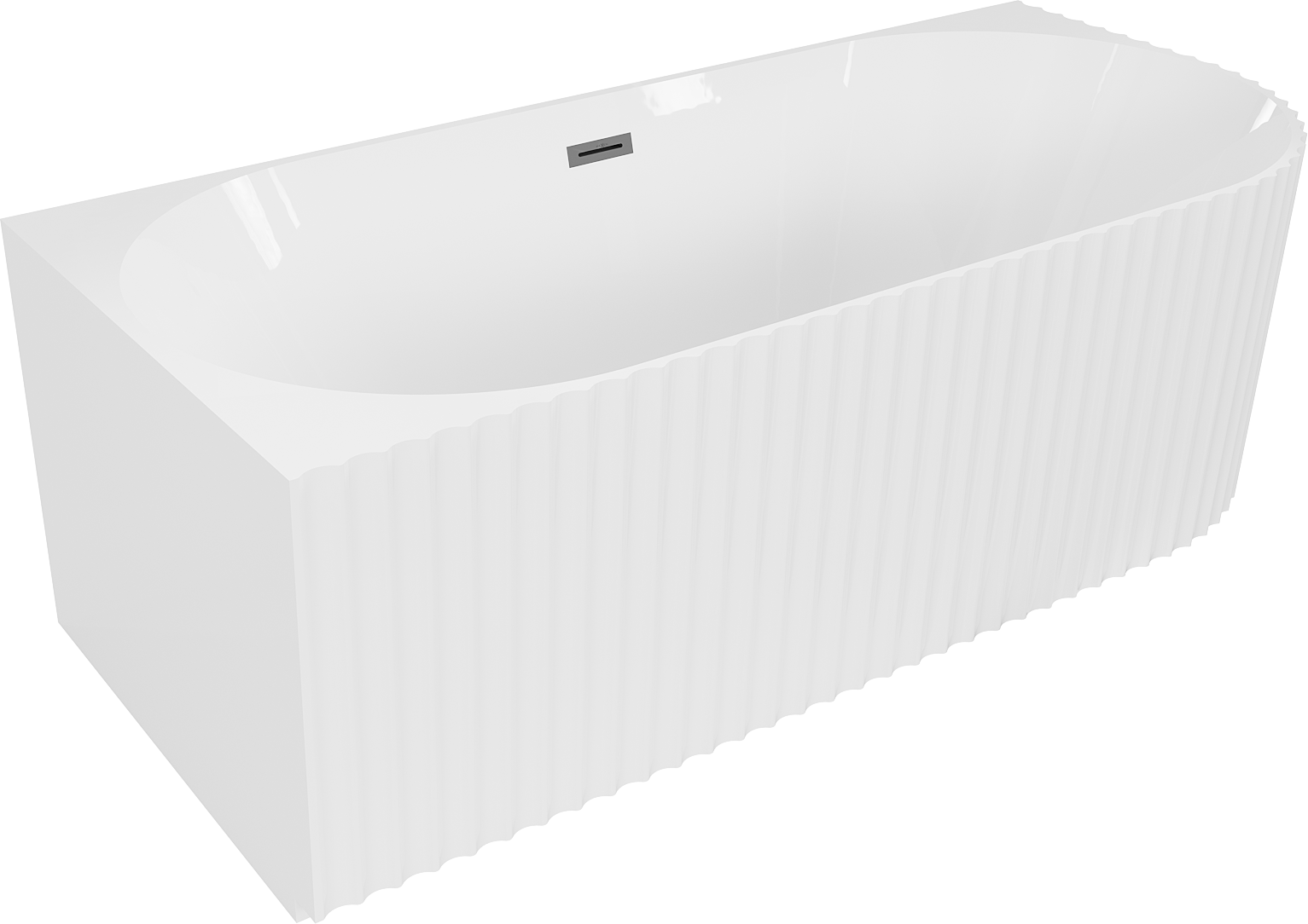 Mexen Gia вана свободностояща ъглова оребрена лява 150 x 75 см, бял гланц, преливник gun metal - 52701507500L-95