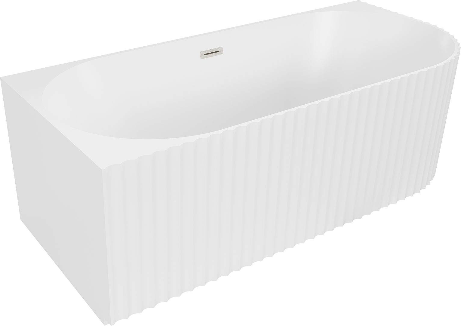 Mexen Gia самостоятелна, ъглова, оребрена лява вана 150 x 75 cm, бяла мат, преливник никел матов - 52701507501L-97