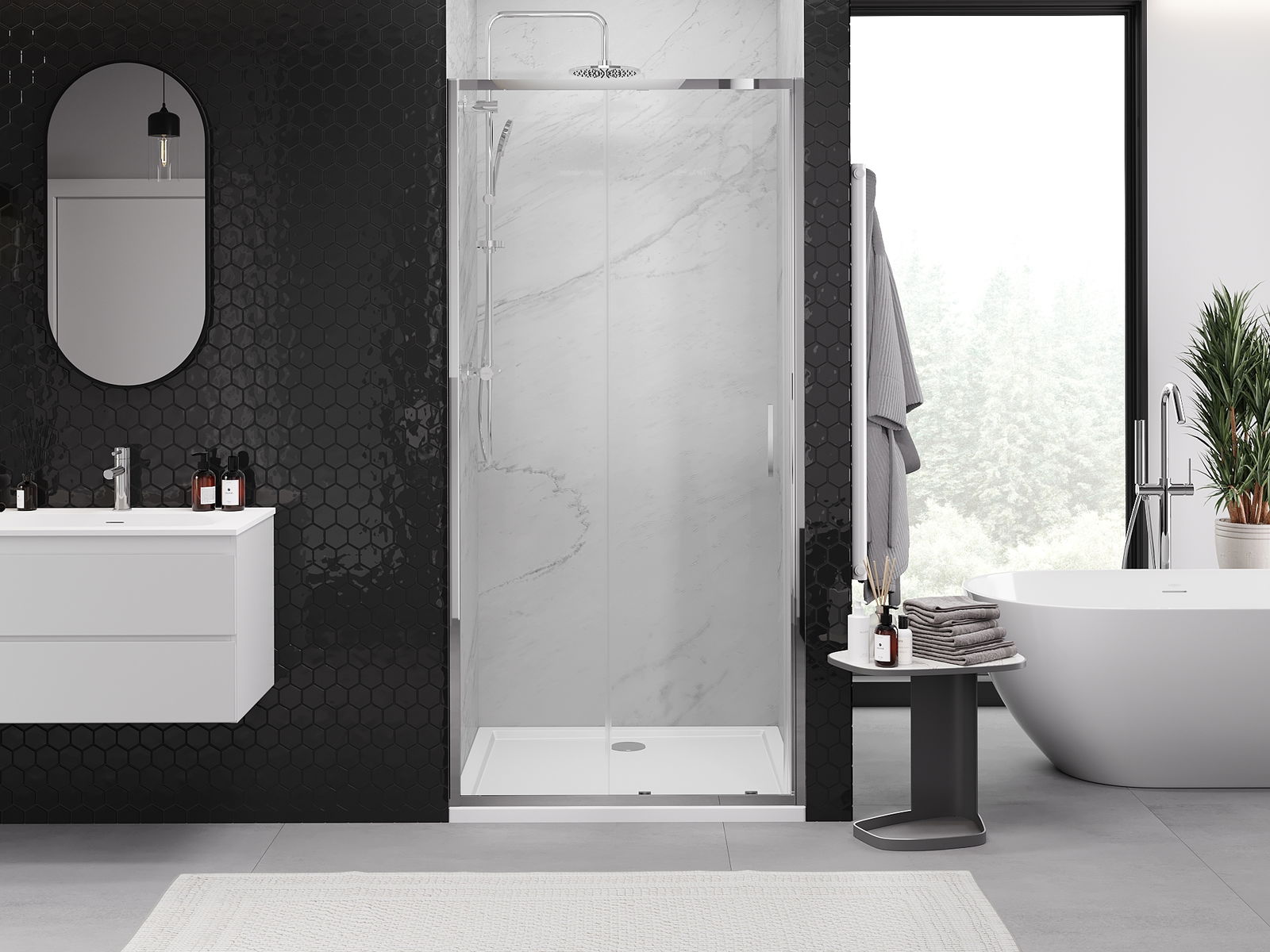 Плъзгащите се врати се движат по специални водачи и не изискват допълнително пространство, за да се отворят, поради което са подходящи за по-малки бани. Благодарение на двойните ролки с метално тяло, движението им е гладко.