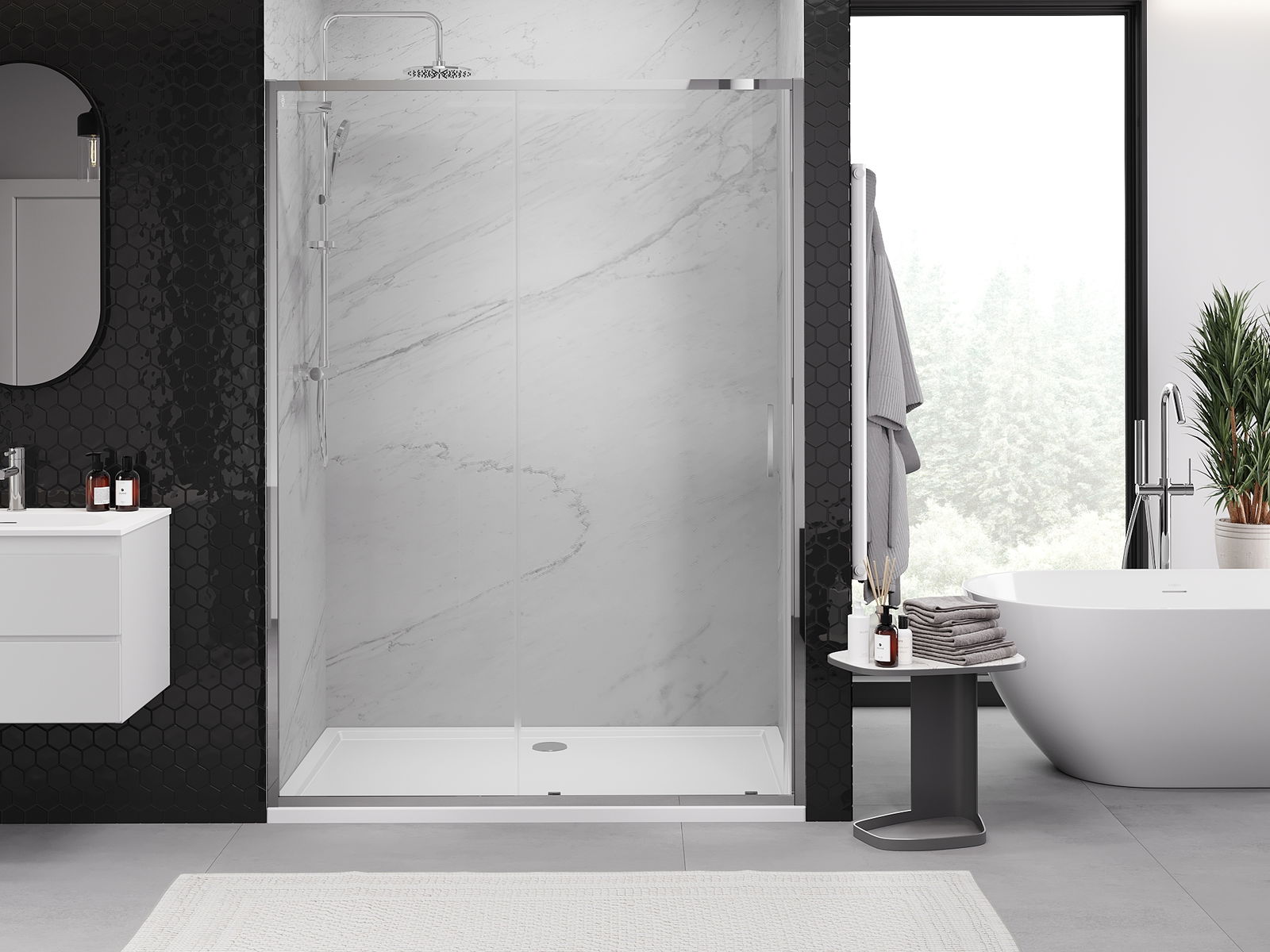 Плъзгащите се врати се движат по специални водачи и не изискват допълнително пространство, за да се отворят, поради което са подходящи за по-малки бани. Благодарение на двойните ролки с метално тяло, движението им е гладко.