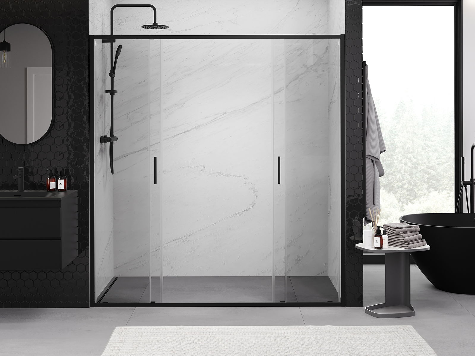 Mexen Exo двойни плъзгащи се врати за душ 200 cm, прозрачни, черни - 8152-200-000-70-00