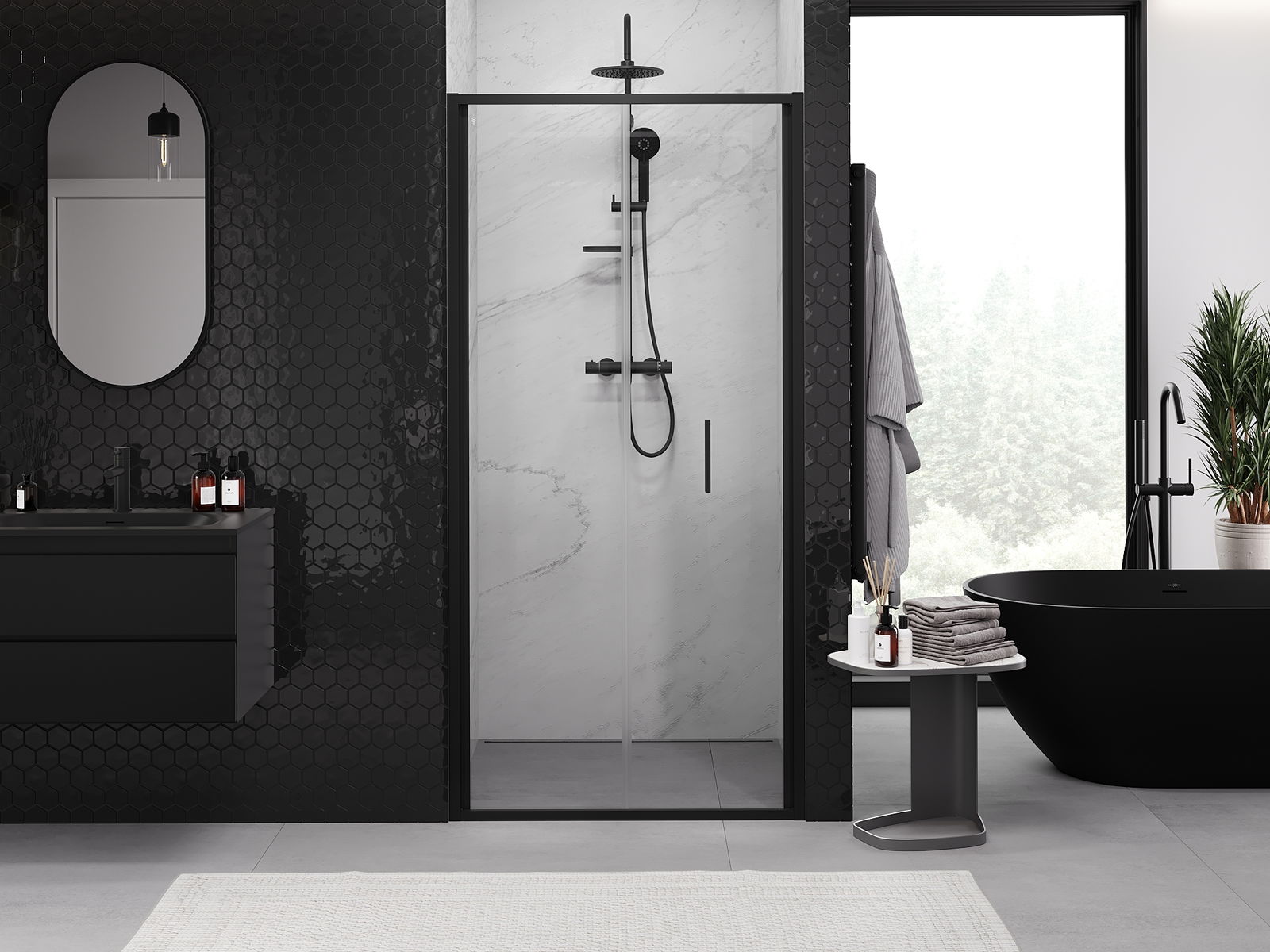 Mexen Exo сгъваема душ кабина 90 см, прозрачна, черна - 816-090-000-70-00