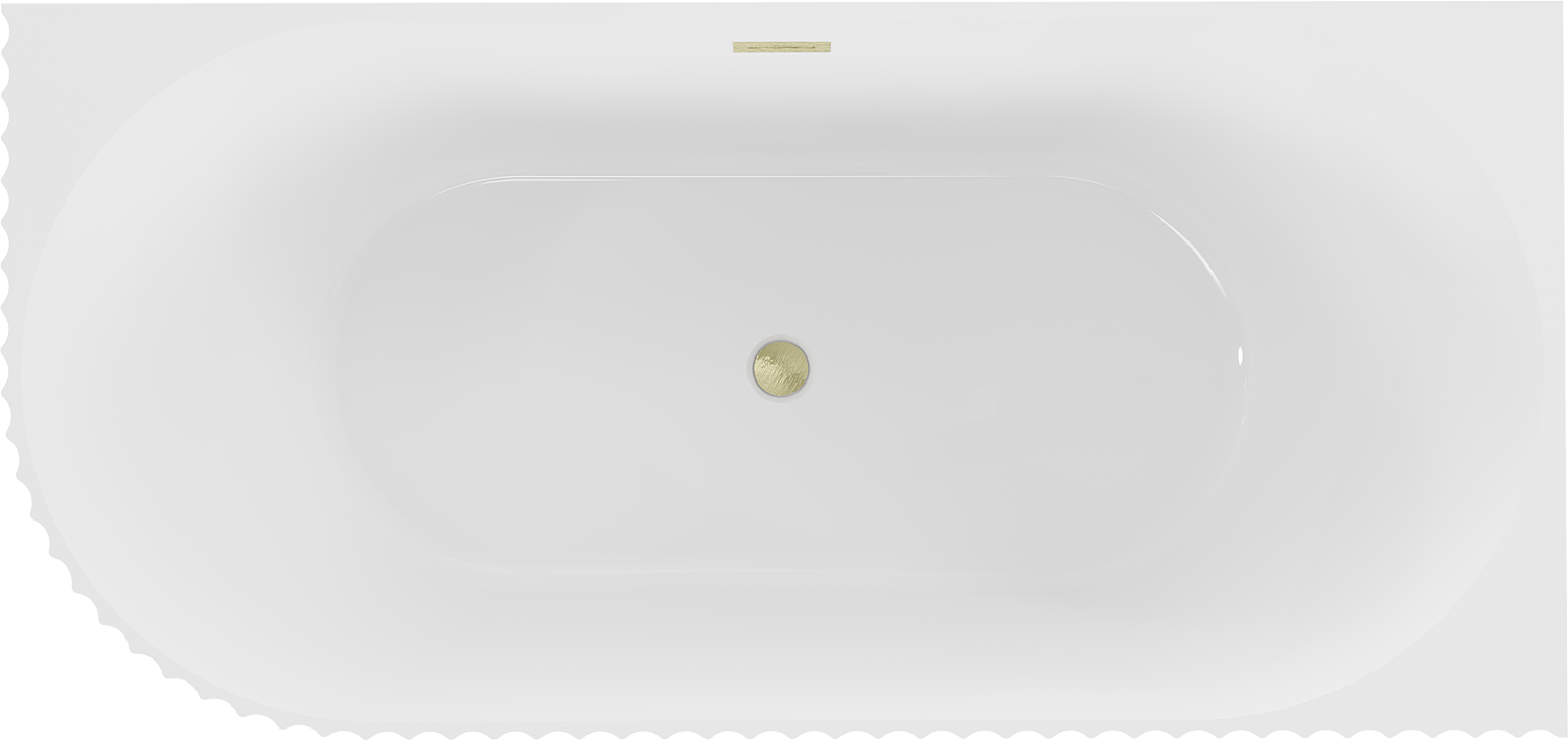 Mexen Gia свободностояща ъглова вана с рифел, дясна 150 x 75 см, бяла гланц, преливник златисто четкан - 52701507500P-55
