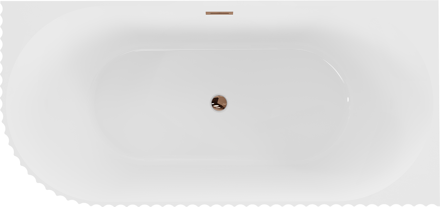 Mexen Gia свободно стояща ъглова рифована дясна вана 150 x 75 см, бял гланц, преливник розово злато - 52701507500P-60