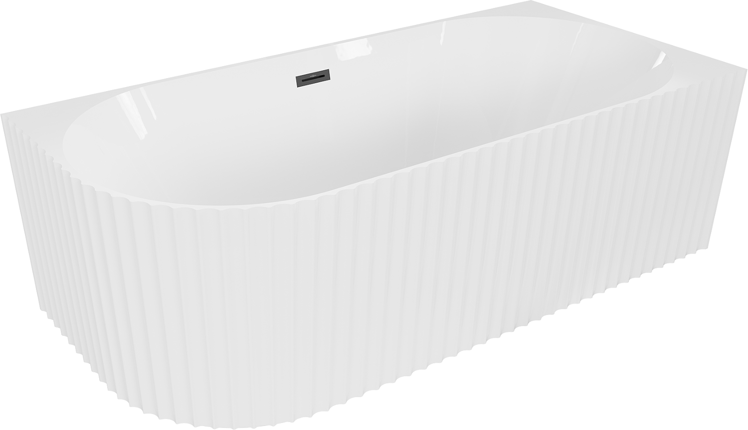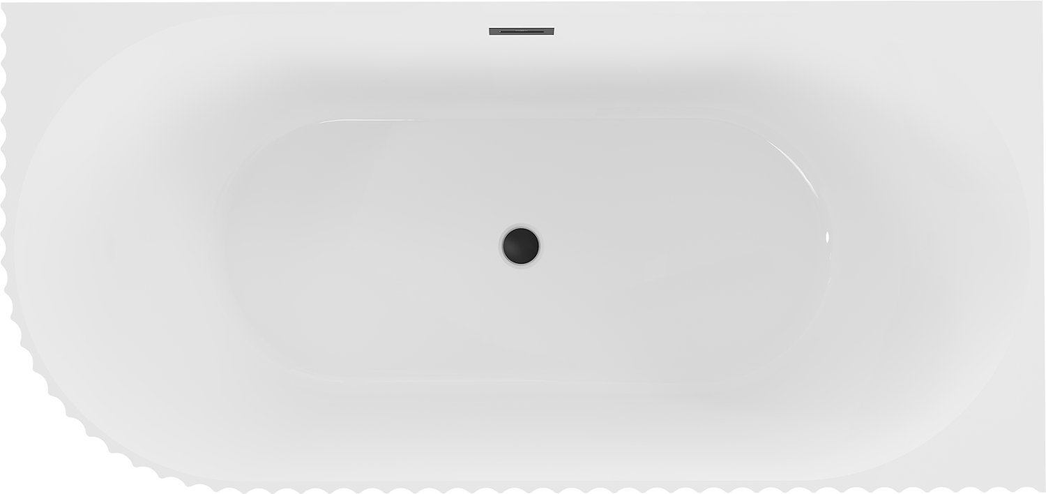 Mexen Gia самостоятелна рифлена вана с дясен ъгъл 150 x 75 cm, бял гланц, черен преливник - 52701507500P-70