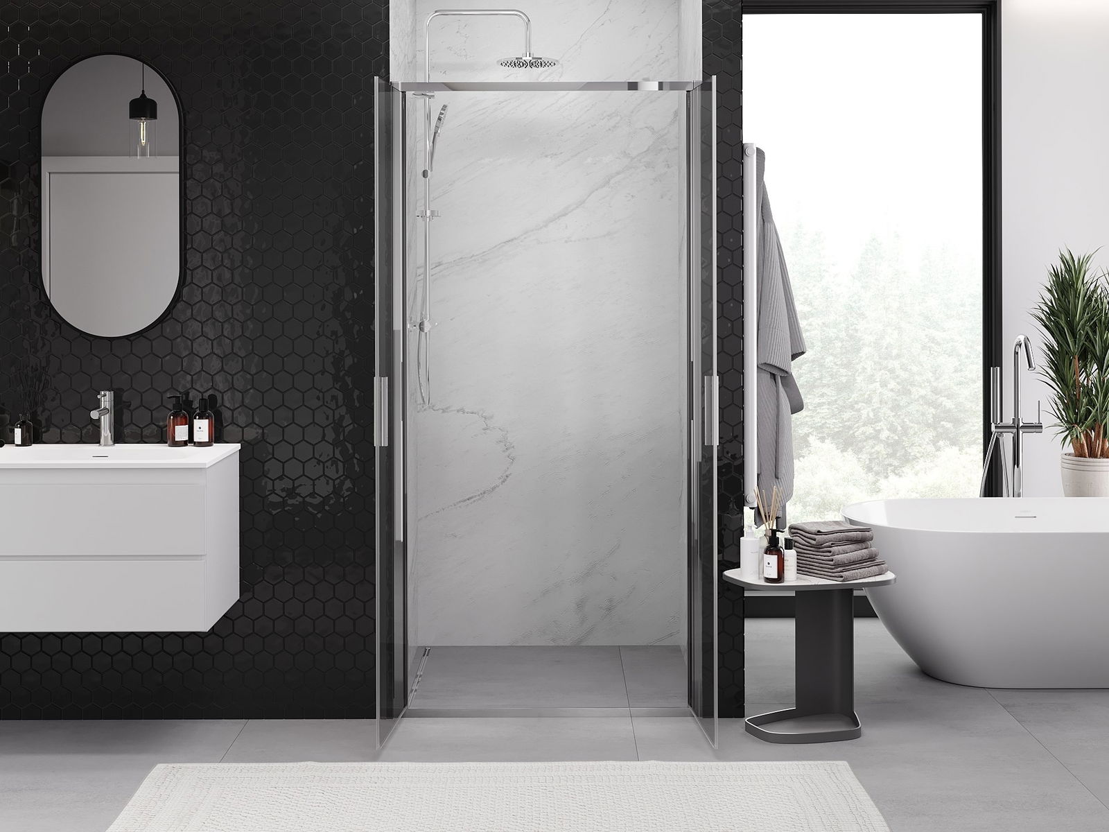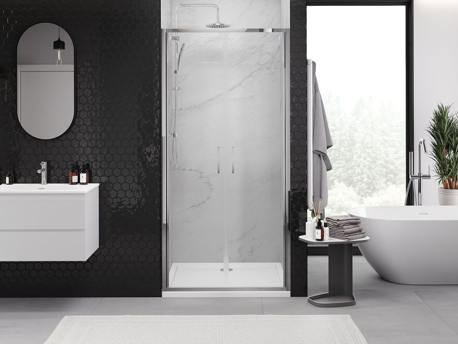 Mexen Exo двойни душ кабини с отварящи се врати 100 см, прозрачни, хром
