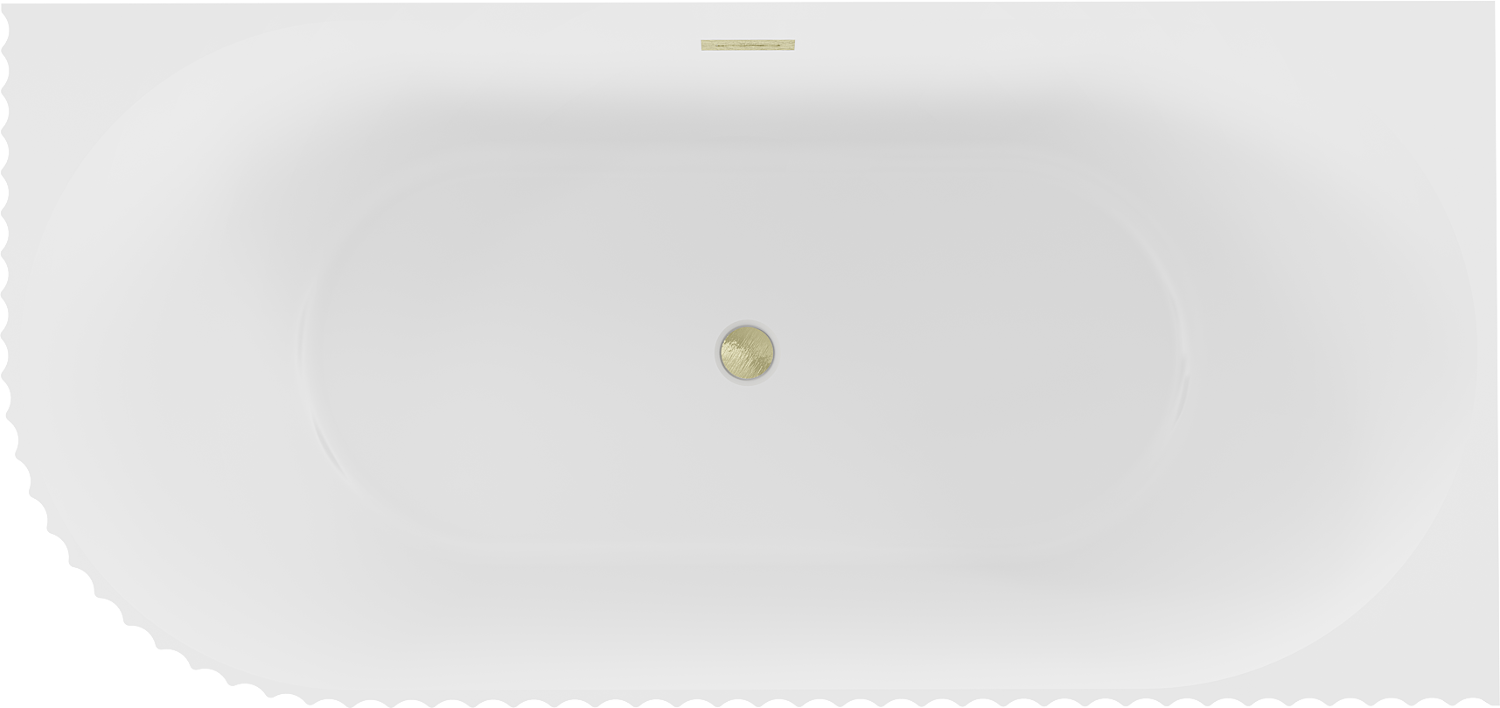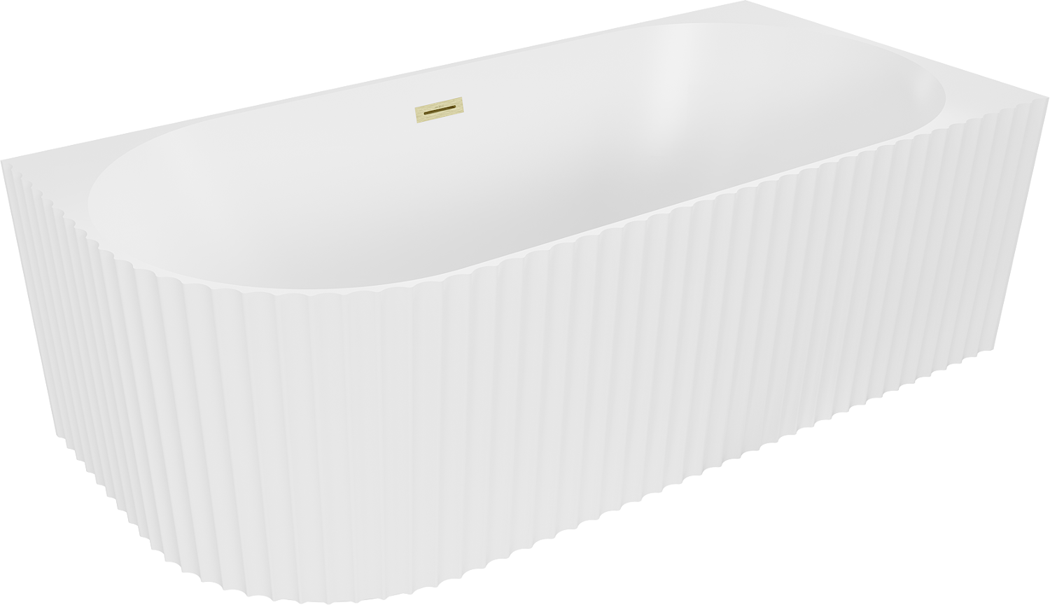 Mexen Gia самостоятелна свободностояща вана с оребрен десен ъгъл 150 x 75 cm, бяла мат, преливник златна четка - 52701507501P-55