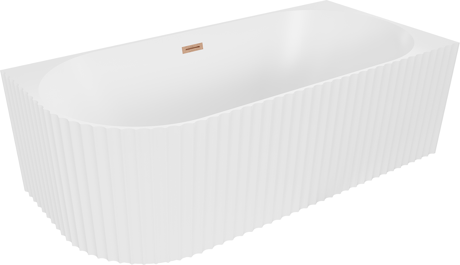 Mexen Gia свободностояща вана ъглова с набраздяване дясна 150 x 75 см, бяла мат, преливник четкана мед - 52701507501P-65