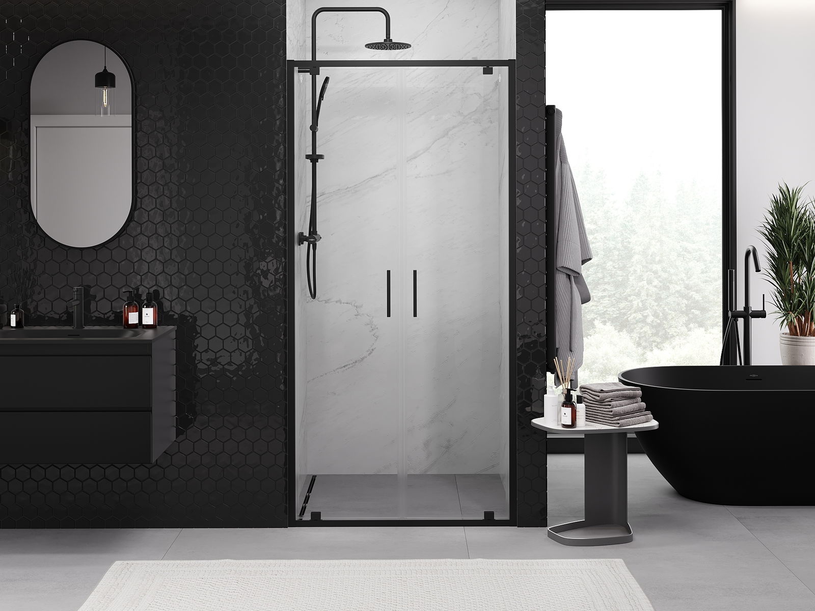 Mexen Exo двукрилни душ врати 100 см, прозрачни, черни - 8182-100-000-70-00