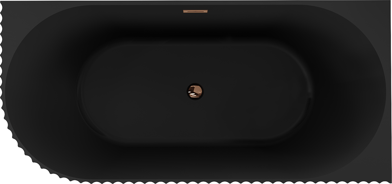 Mexen Gia свободно стояща ъглова рифлена вана дясна 150 x 75 cm, черен мат, преливане розово злато - 52701507571P-60