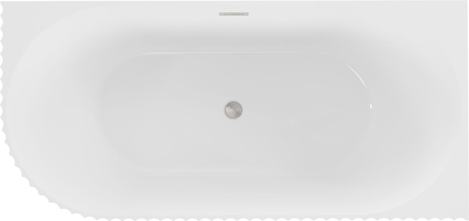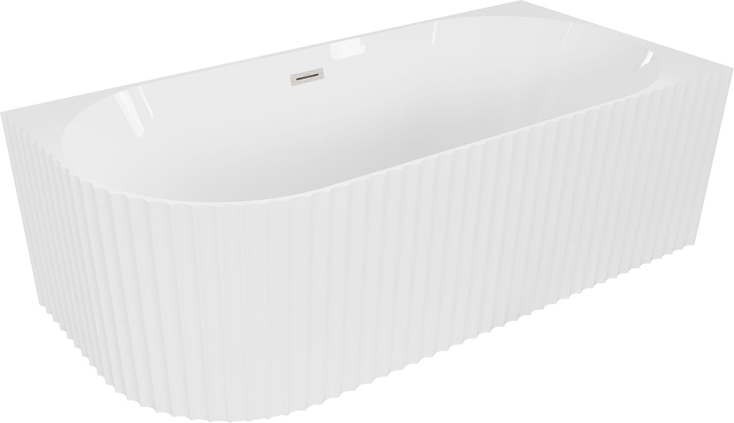 Mexen Gia самостоятелна ъглова оребрена вана дясна 170 x 80 cm, бял гланц, преливане от четкан никел - 52701708000P-97
