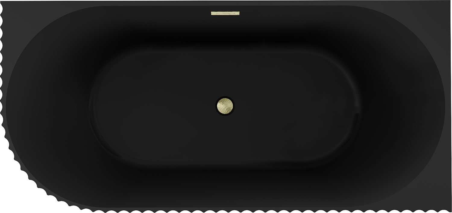 Mexen Gia свободно стоящa вана, ъглова оребрена дясна 170 x 80 см, черна мат, прелив златист четкан - 52701708071P-55