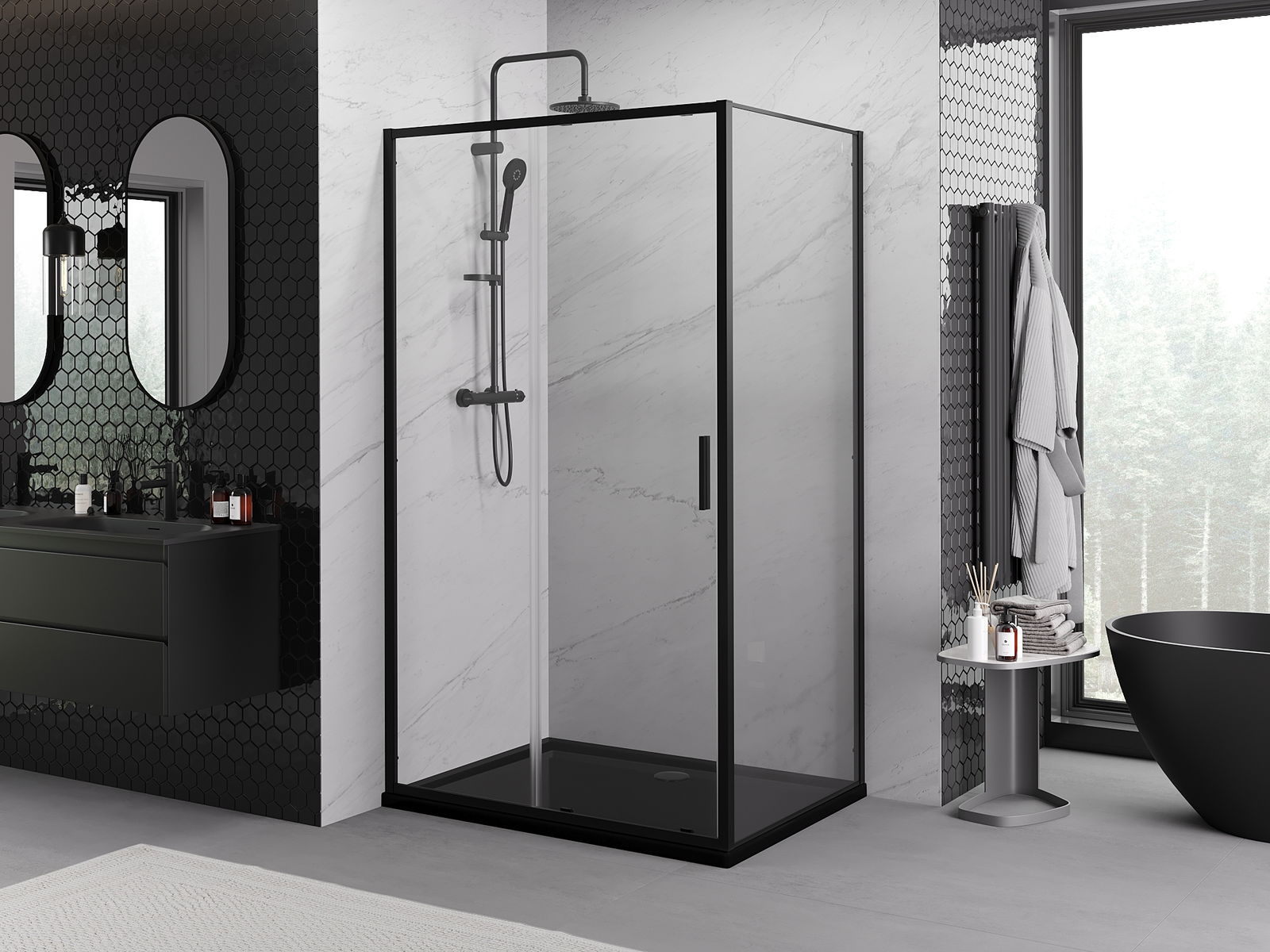 Mexen Rio квадратна душ кабина 90 x 90 см, прозрачна, черна - 860-090-090-70-00
