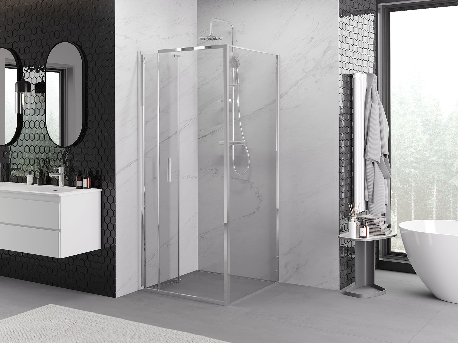 Възможност за сгъване на вратите навътре, тази функция позволява получаването на повече пространство при неизползване на душа. Това е идеално решение за по-малки бани, което максимално използва наличното пространство.