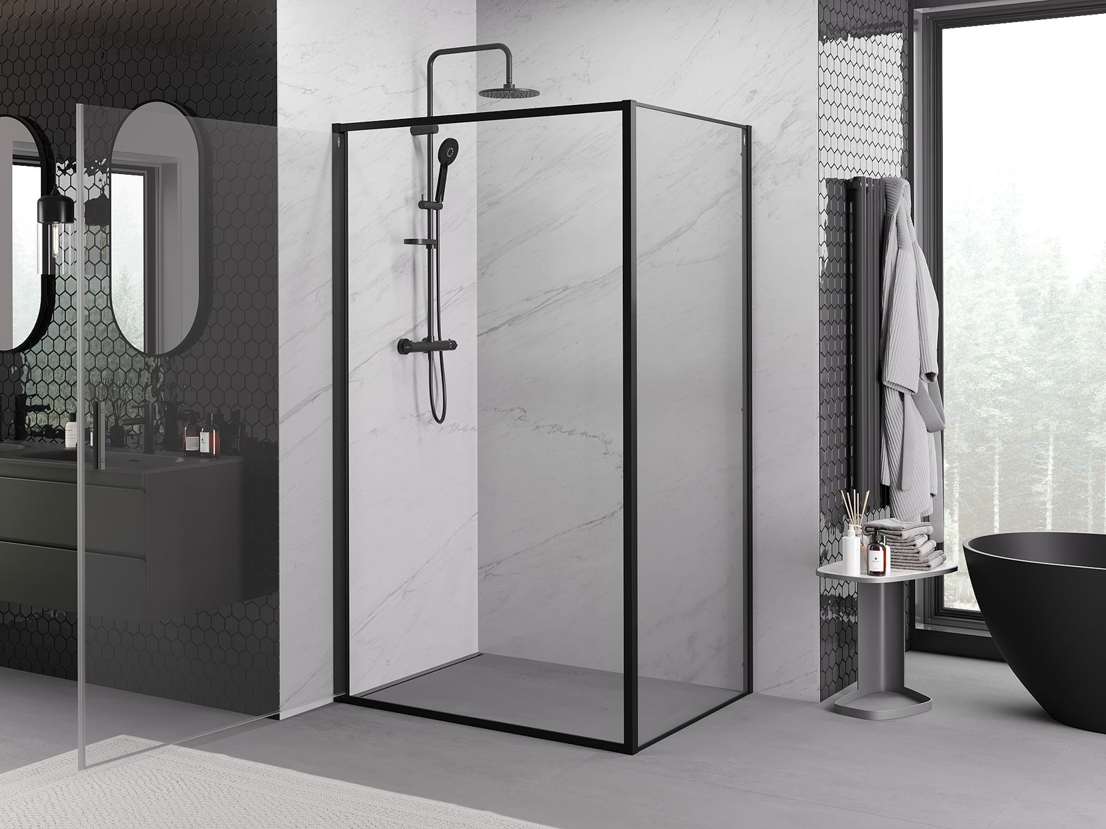 Благодарение на използването на универсалната система за монтаж, душовите врати могат да бъдат монтирани отдясно или отляво, в зависимост от нуждите. Благодарение на това можете лесно да проектирате душ, който е напаснат към пространството в банята.