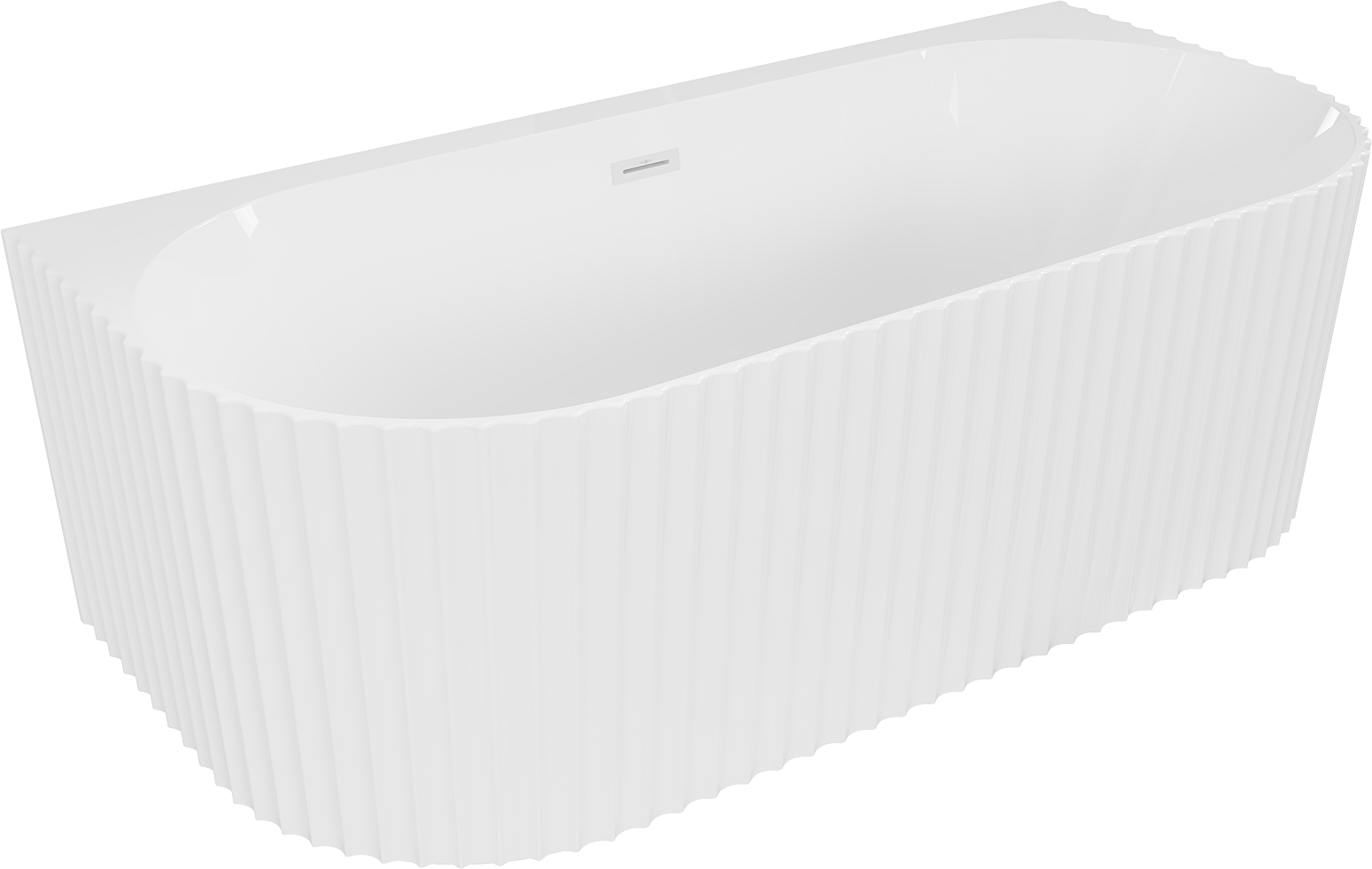 Mexen Sella свободностояща крайстенна оребрена вана 150 x 75 см, бял гланц, бял преливник - 52711507500-20