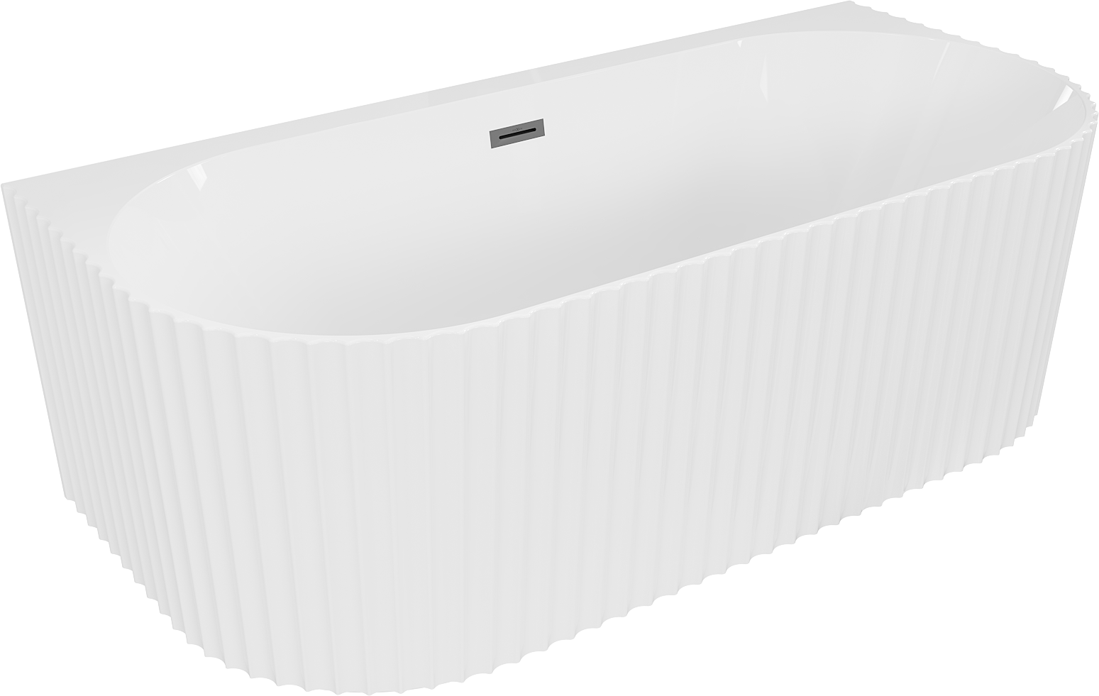 Mexen Sella самостоятелна стенна вана с ребра 150 x 75 см, бял гланц, преливане gun metal - 52711507500-95