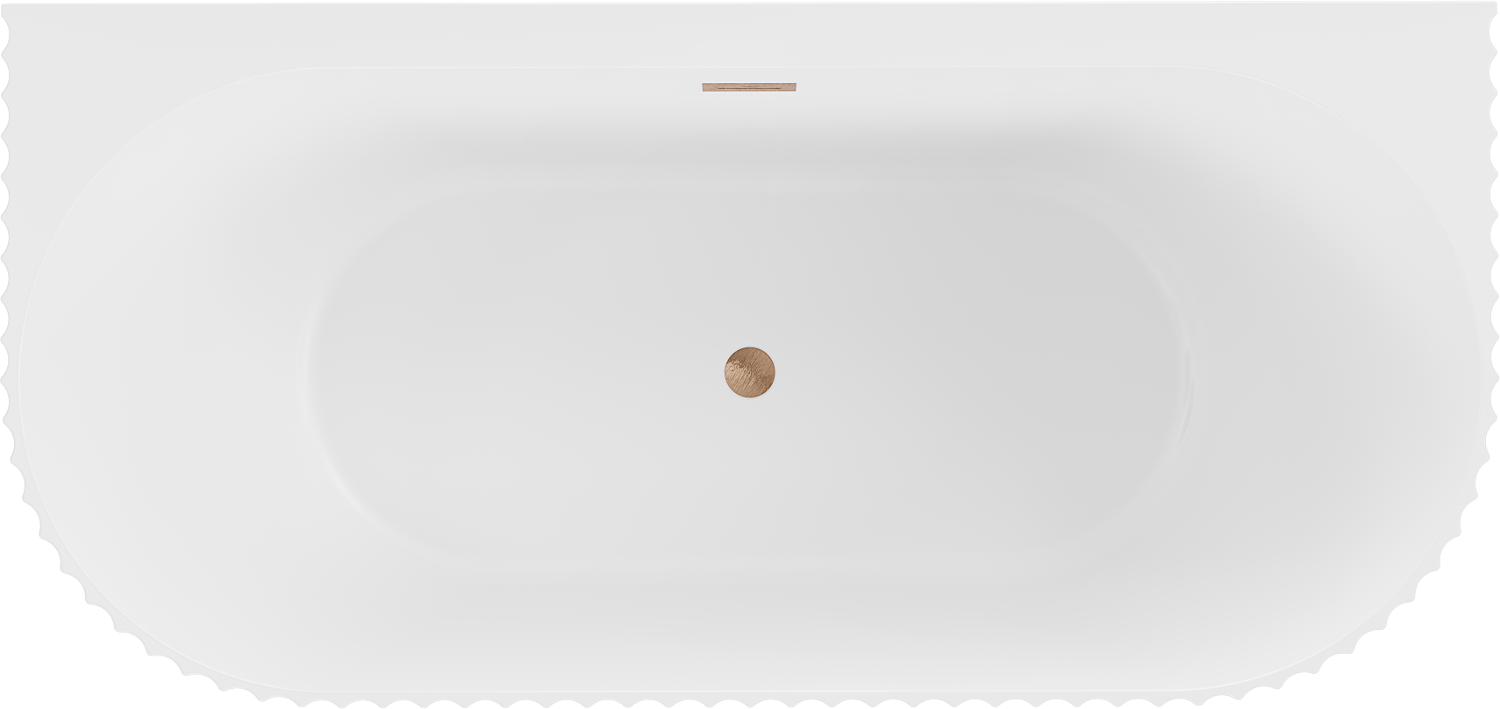 Mexen Sella свободностояща оребрена вана до стена 150 x 75 см, бяла мат, преливане от четкана мед - 52711507501-65