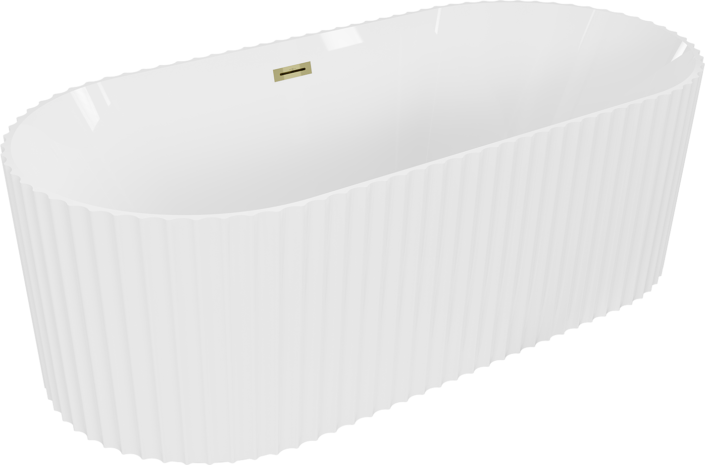 Mexen Paola свободно стояща оребрена вана 170 x 80 см, бял гланц, златен преливник - 52721708000-50