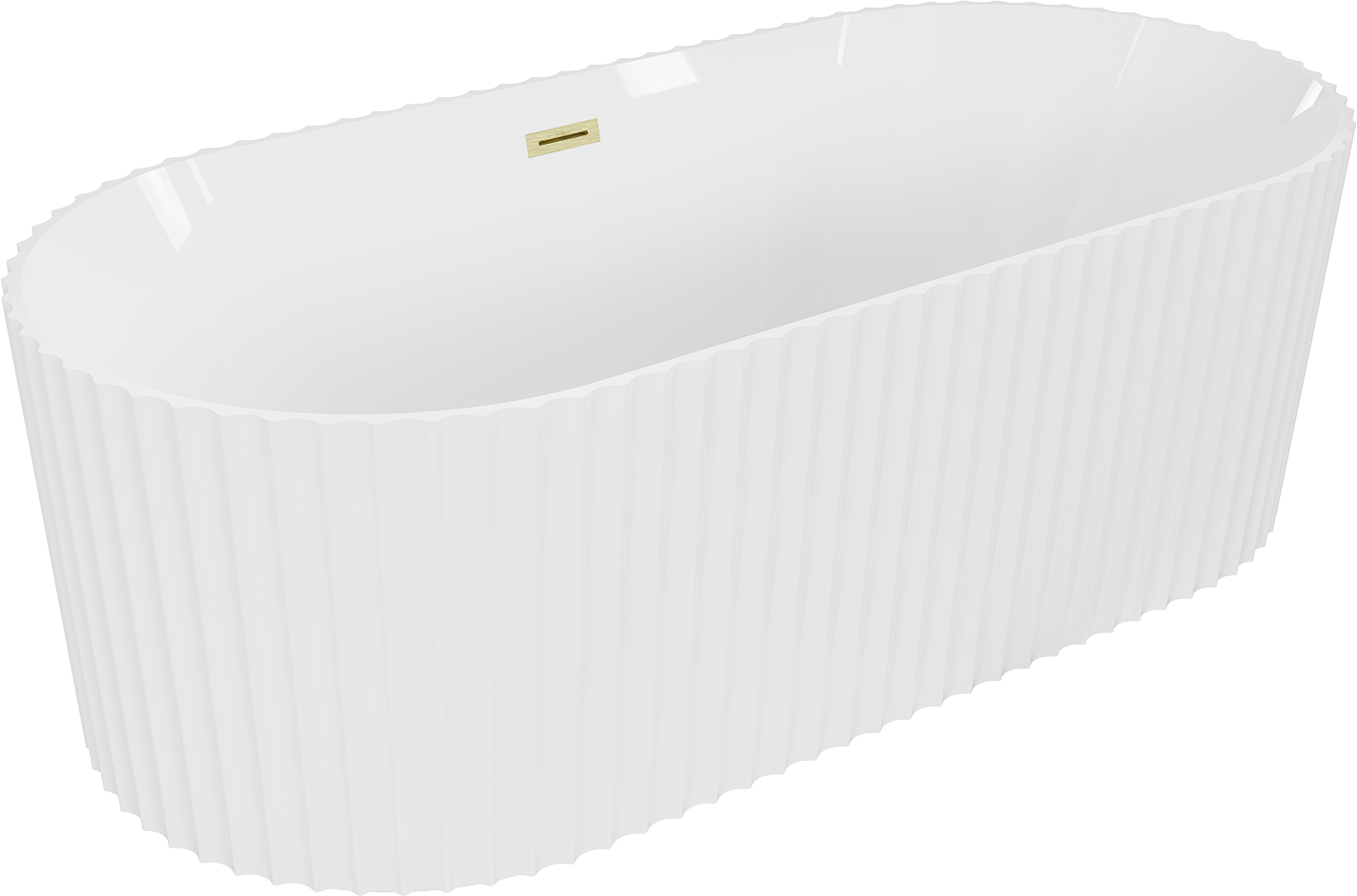 Mexen Paola свободностояща оребрена вана 170 x 80 cm, бял гланц, златен матов преливник - 52721708000-55
