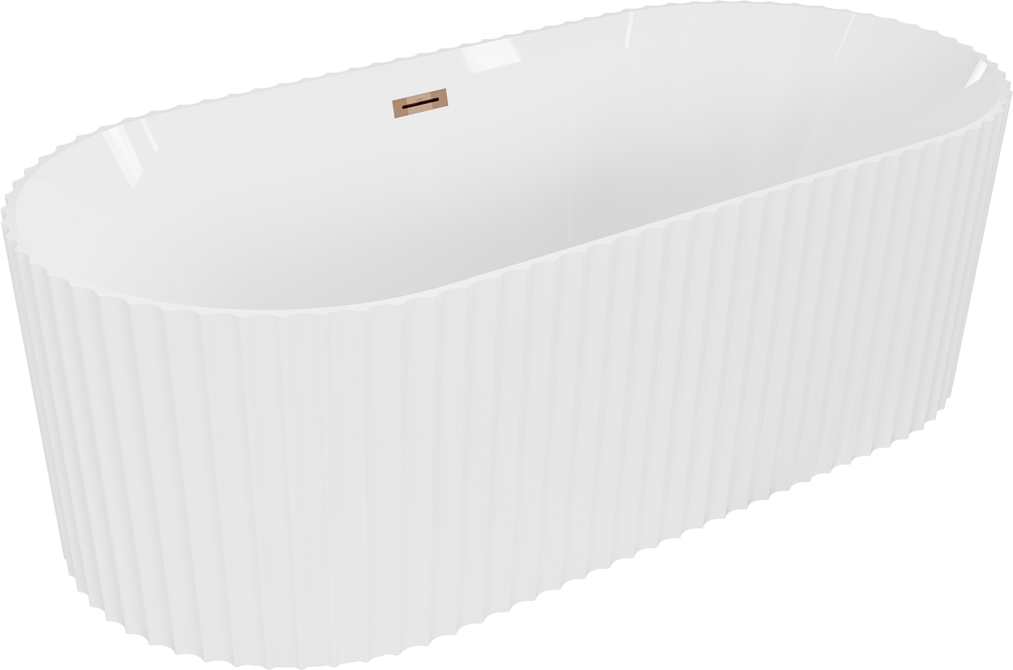 Mexen Paola свободностояща вана оребрена 170 x 80 см, бял гланц, преливник розово злато - 52721708000-60
