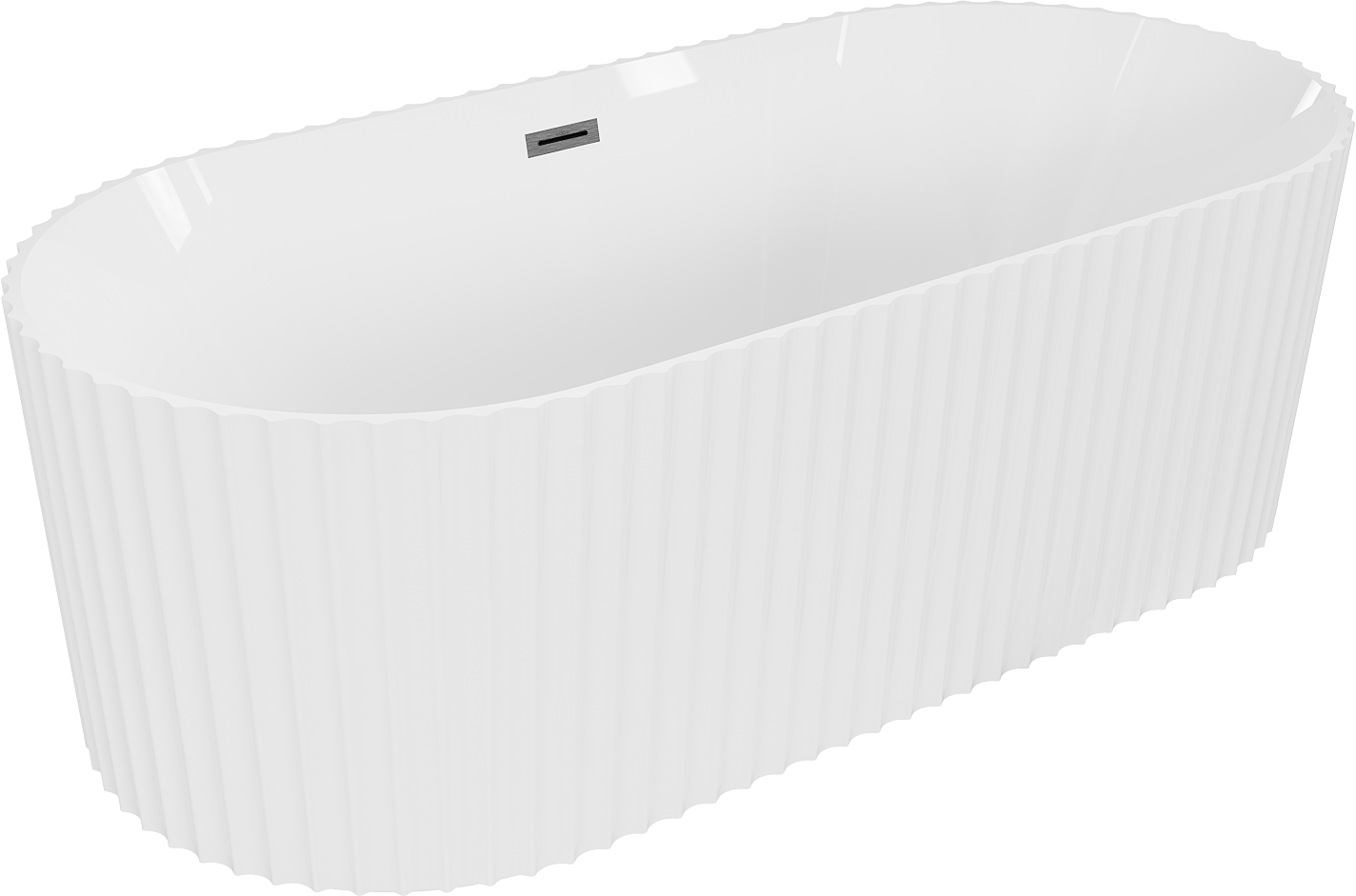 Mexen Paola свободно стояща рифлена вана 170 x 80 см, бял гланц, преливник в четкано сиво - 52721708000-66