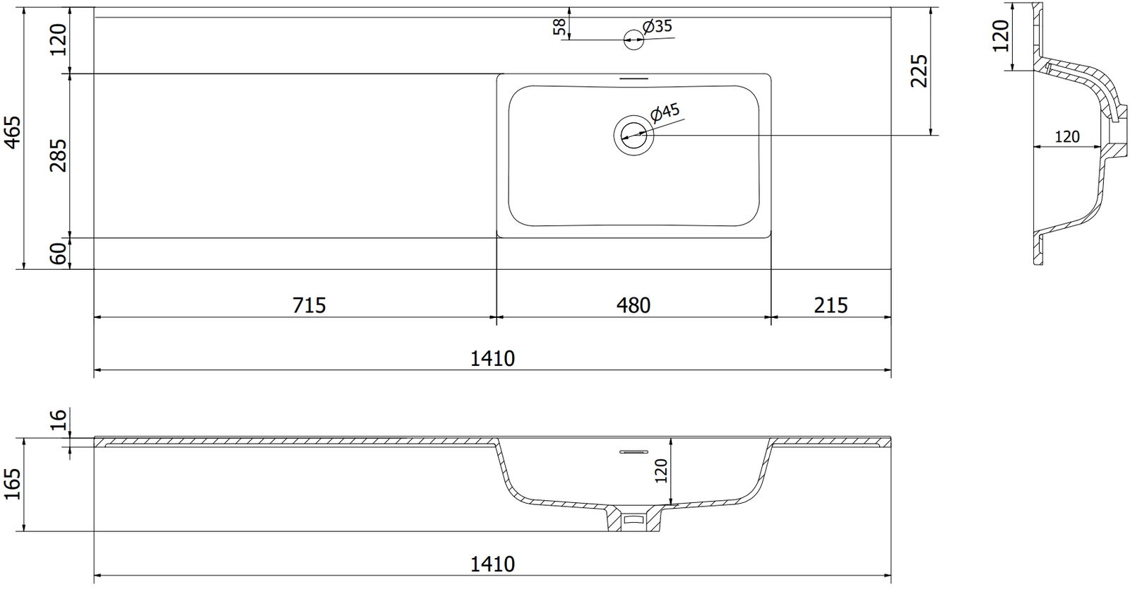 Продуктът е изработен от конгломерат. Характеризира се с гладка повърхност и висока устойчивост на механични повреди и надраскване. Издръжливо решение, запазващо естетичния вид през годините на употреба.