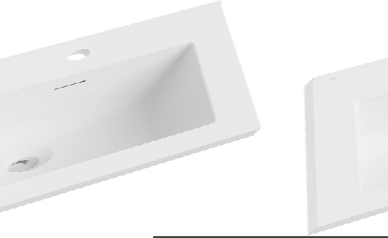 Умивалникът има отвор, в който можем да монтираме батерия. Това позволява да се спести ценно пространство в банята и да подчертае нейната естетика. Това решение също така улеснява поддържането на чистота около умивалника.