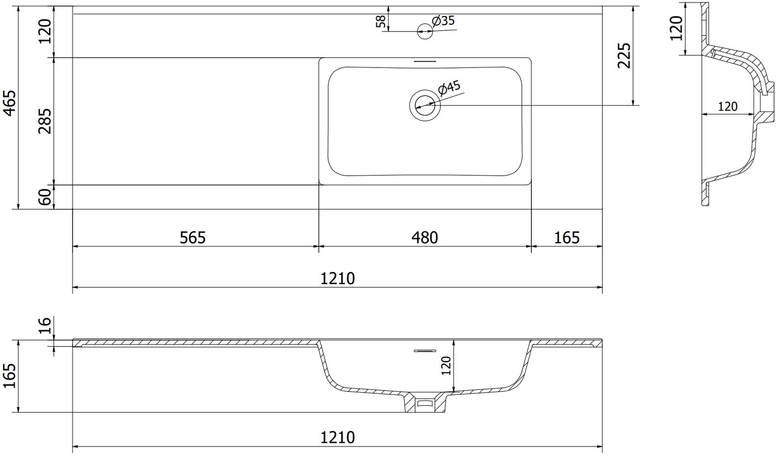 Размер: 121x46,5x16,5 см