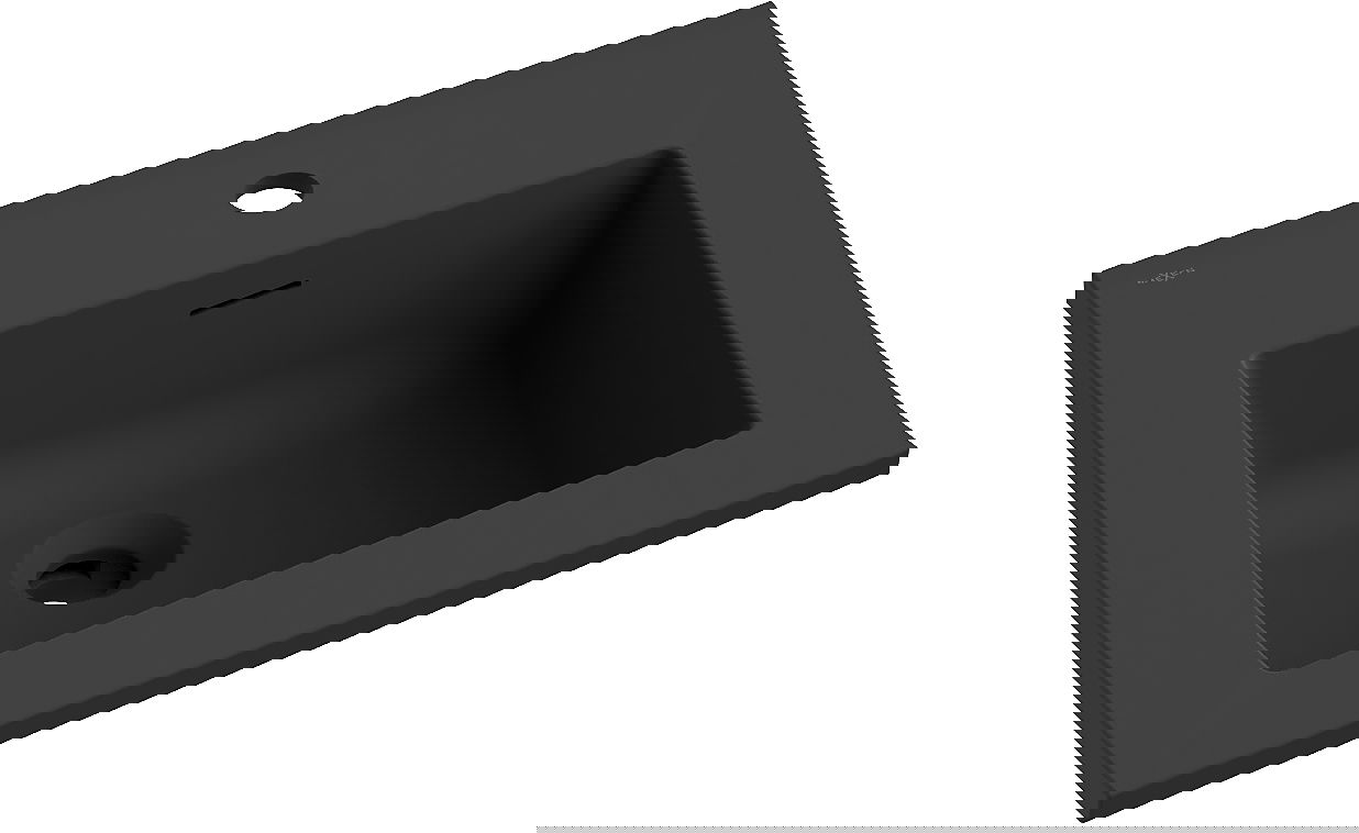 Умивалникът има отвор, в който можем да монтираме батерия. Това позволява да се спести ценно пространство в банята и да подчертае нейната естетика. Това решение също така улеснява поддържането на чистота около умивалника.