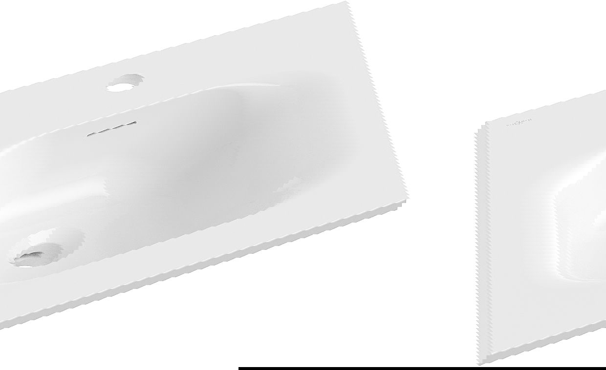 Умивалникът има отвор, в който можем да монтираме батерия. Това позволява да се спести ценно пространство в банята и да подчертае нейната естетика. Това решение също така улеснява поддържането на чистота около умивалника.