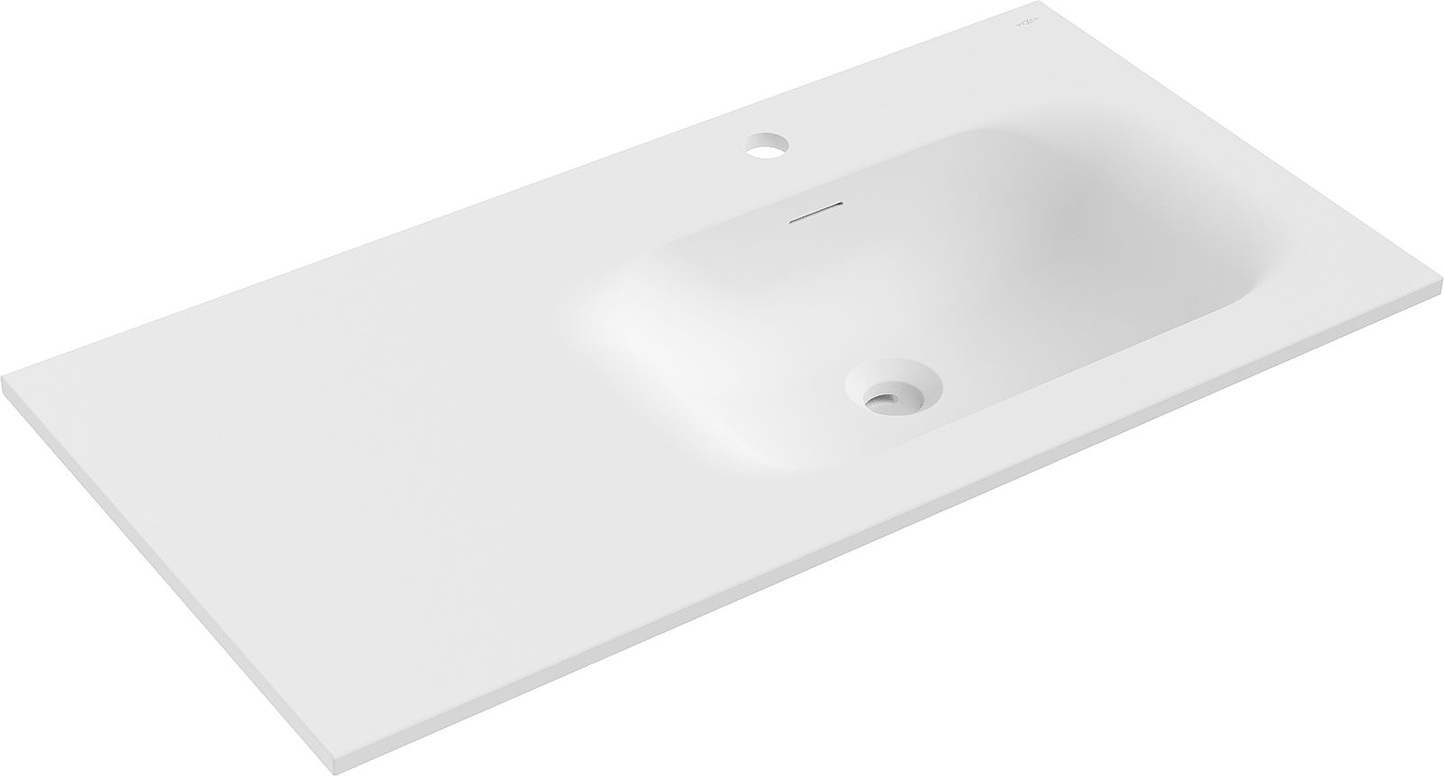 Умивалникът има отвор, в който можем да монтираме батерия. Това позволява да се спести ценно пространство в банята и да подчертае нейната естетика. Това решение също така улеснява поддържането на чистота около умивалника.