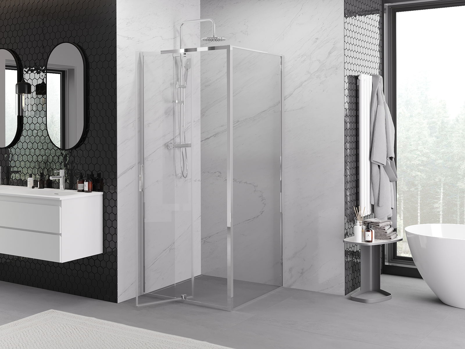 Благодарение на използването на универсалната система за монтаж, душовите врати могат да бъдат монтирани отдясно или отляво, в зависимост от нуждите. Благодарение на това можете лесно да проектирате душ, който е напаснат към пространството в банята.