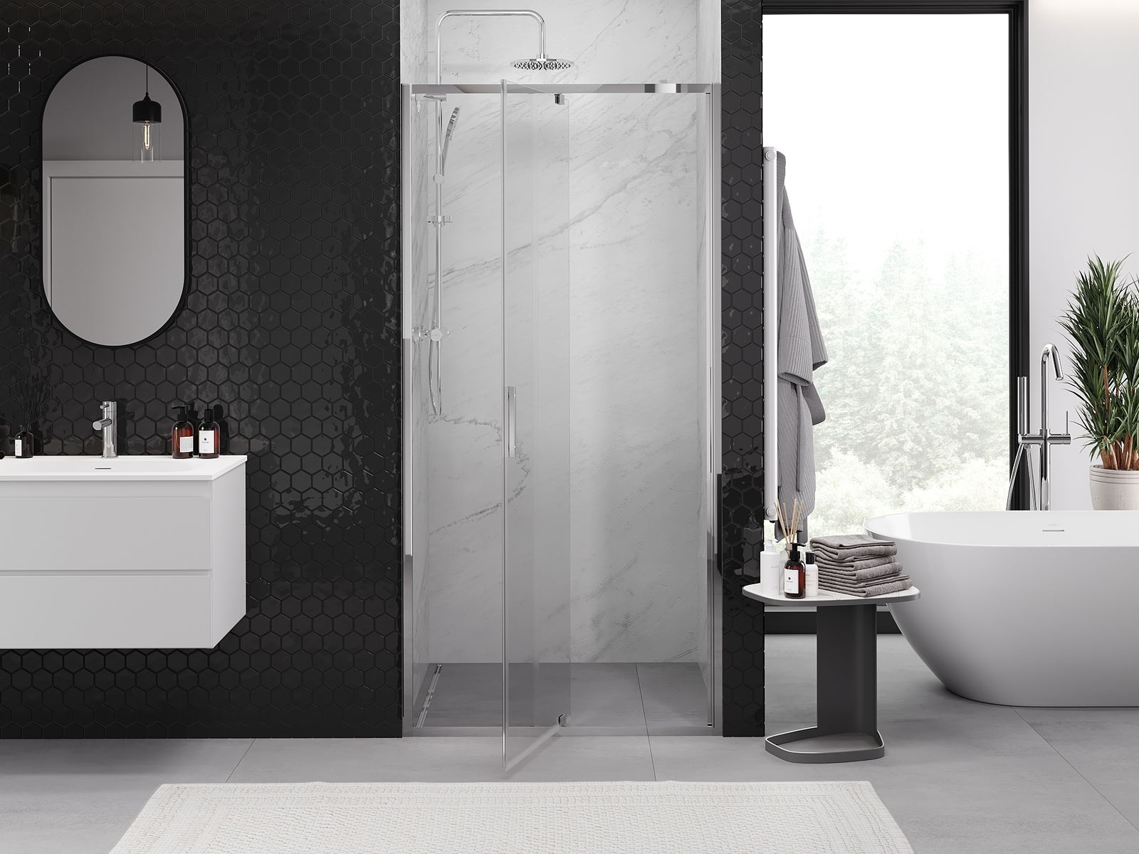 Благодарение на използването на универсалната система за монтаж, душовите врати могат да бъдат монтирани отдясно или отляво, в зависимост от нуждите. Благодарение на това можете лесно да проектирате душ, който е напаснат към пространството в банята.
