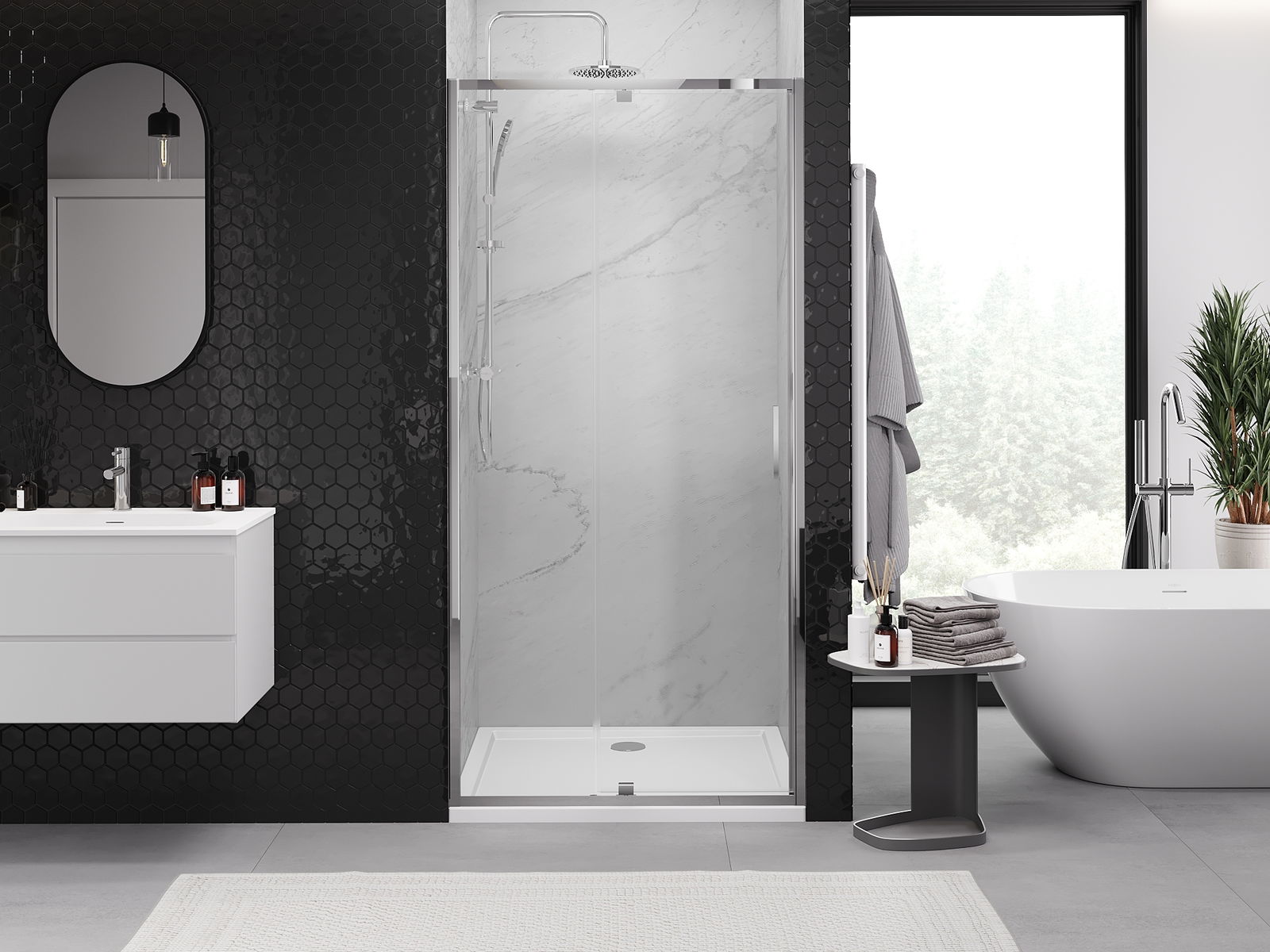 Благодарение на използването на универсалната система за монтаж, душовите врати могат да бъдат монтирани отдясно или отляво, в зависимост от нуждите. Благодарение на това можете лесно да проектирате душ, който е напаснат към пространството в банята.