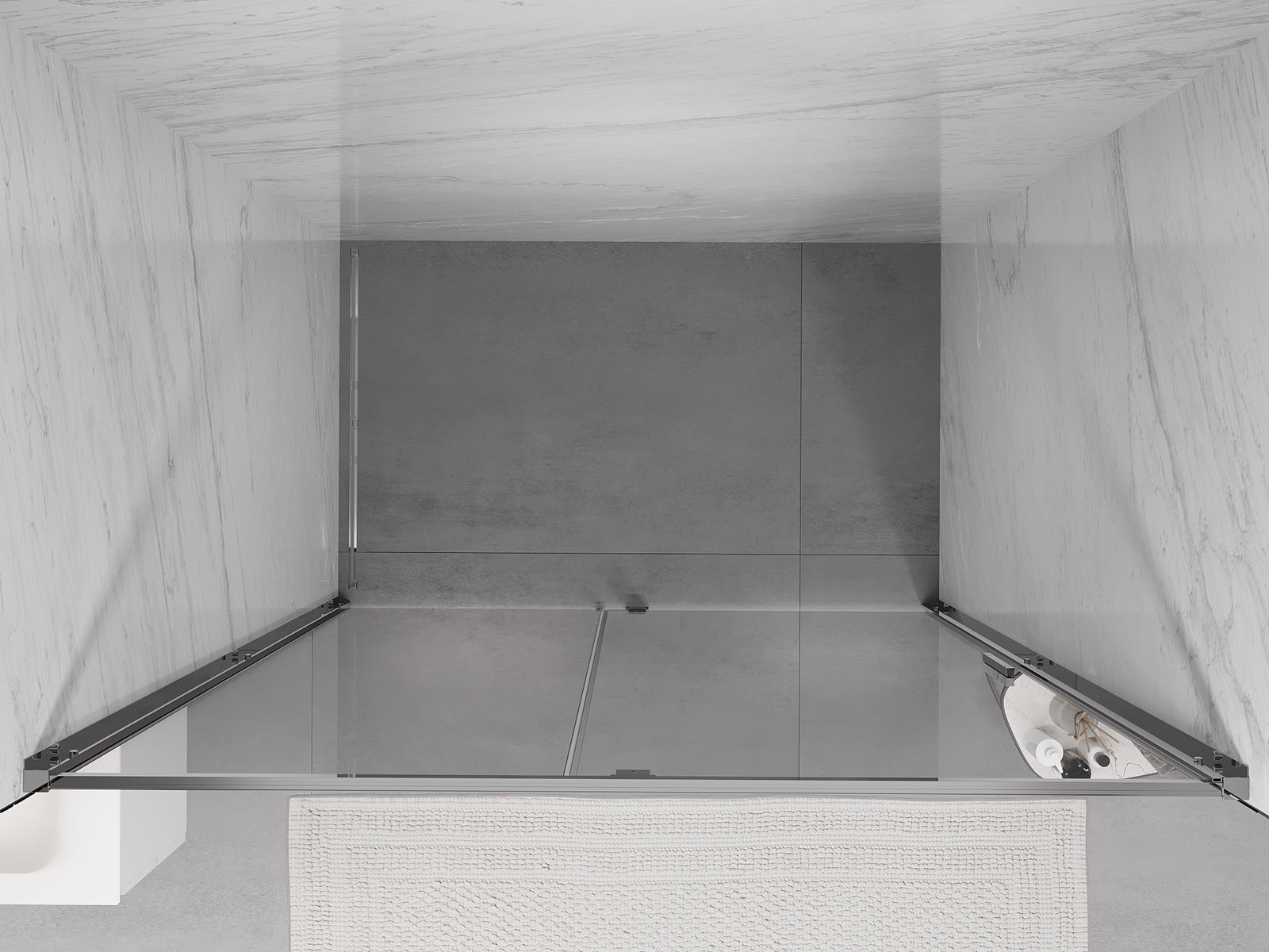 Удобната и практична дръжка е изработена от здрав и устойчив метал. Модерната форма в съчетание с покритието, съответстващо на цвета на профилите, придава на цялото модерен и стилен вид, подчертавайки естетиката на всяка баня.