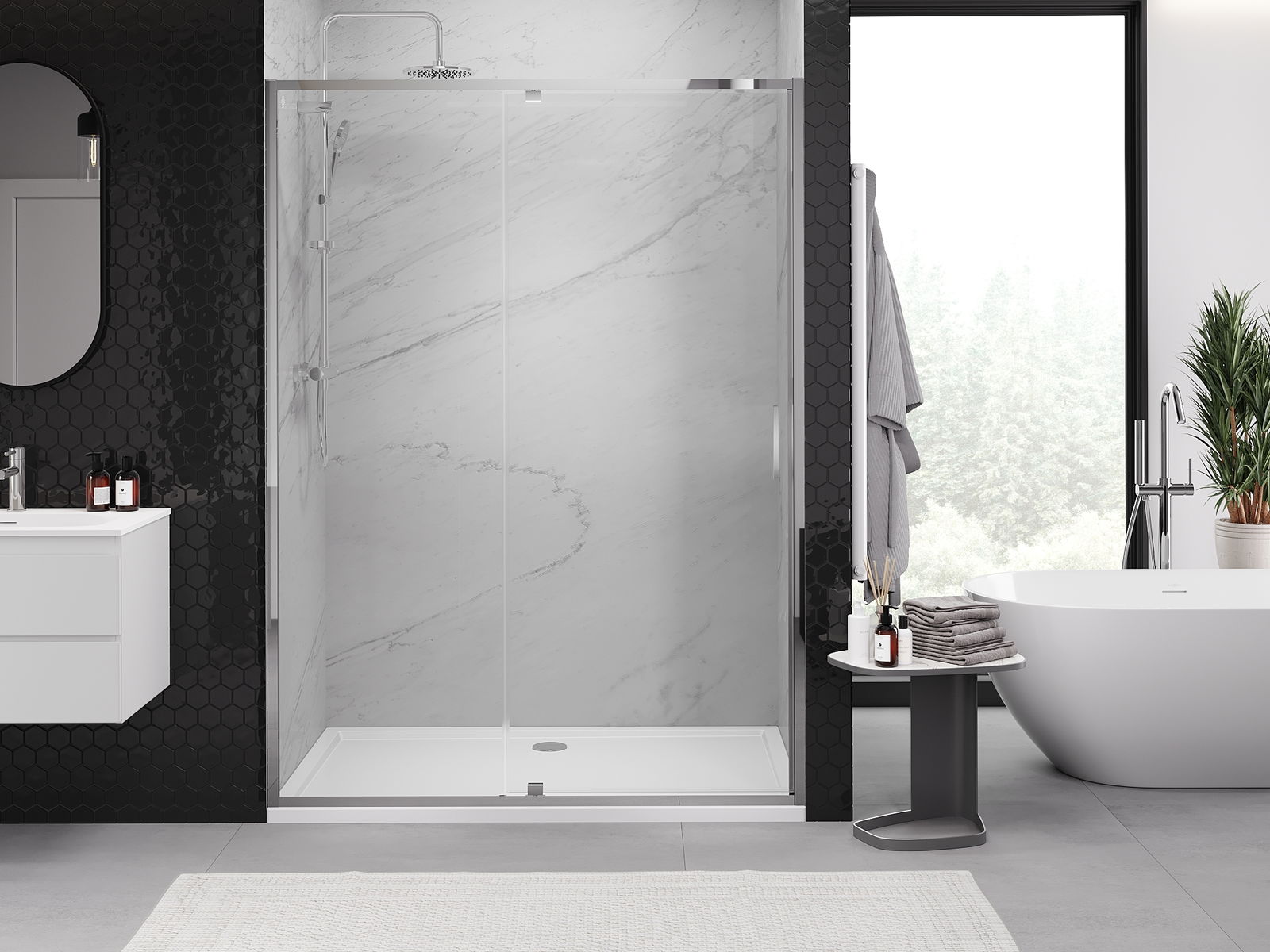 Благодарение на използването на универсалната система за монтаж, душовите врати могат да бъдат монтирани отдясно или отляво, в зависимост от нуждите. Благодарение на това можете лесно да проектирате душ, който е напаснат към пространството в банята.
