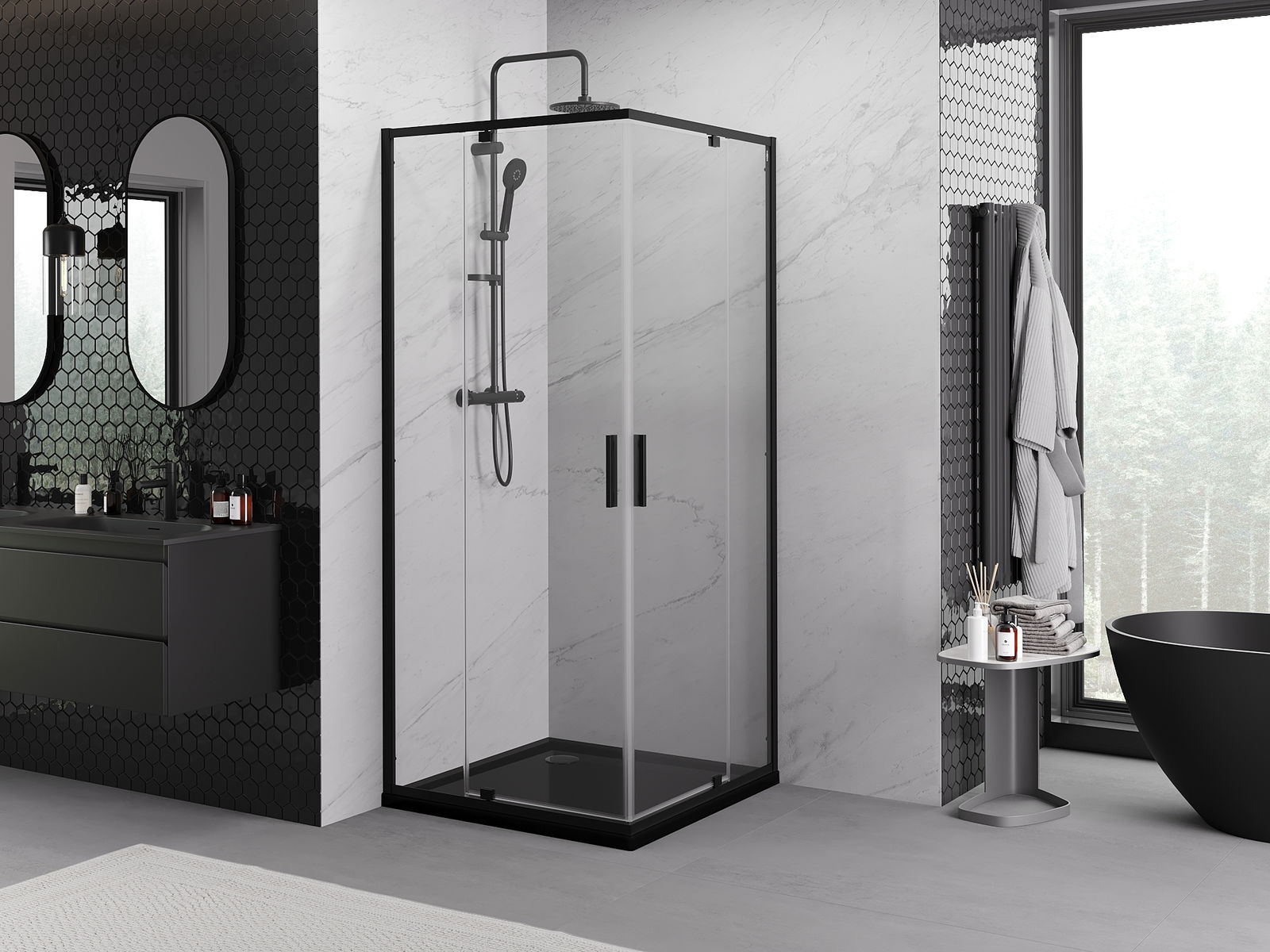 Mexen Rio квадратна душ кабина 90 x 90 см, прозрачна, черна - 860-090-090-70-00