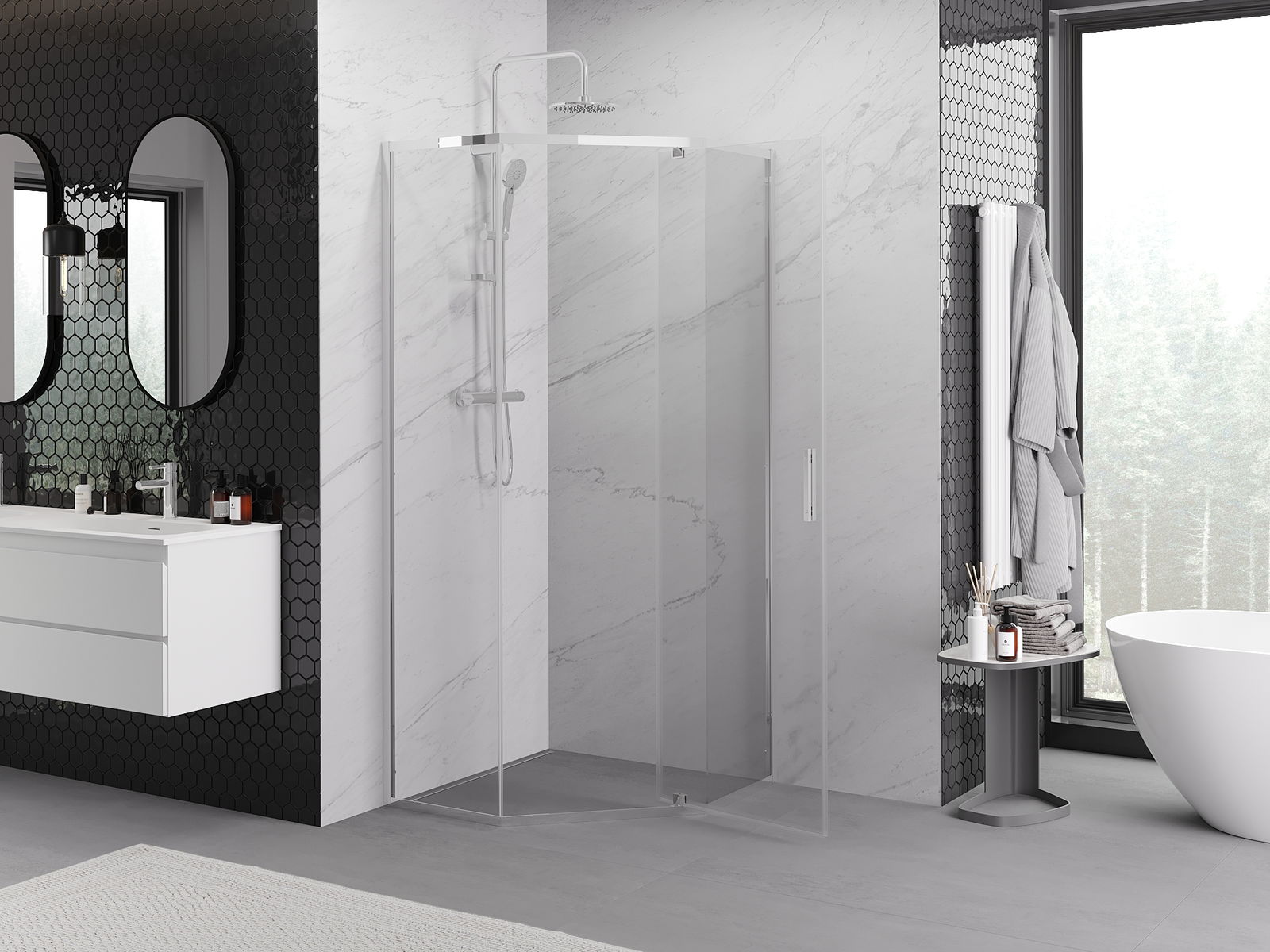 Mexen Exo петоъгълна душ кабина с врата 90 x 90 см, прозрачна, хромирана
