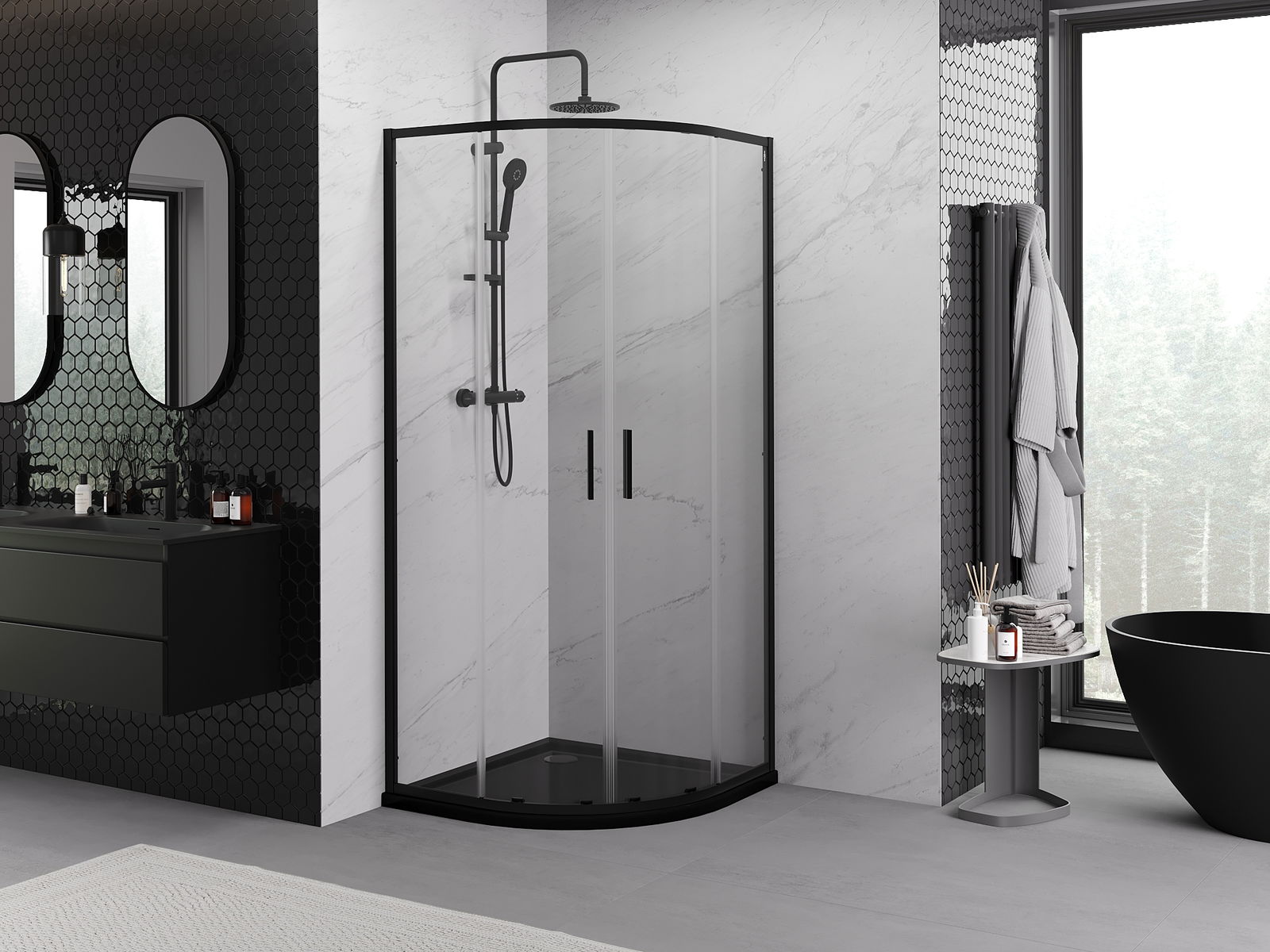 Mexen Exo полукръгла плъзгаща се душ кабина 90 x 90 см, прозрачна, черна - 8132-090-090-70-00