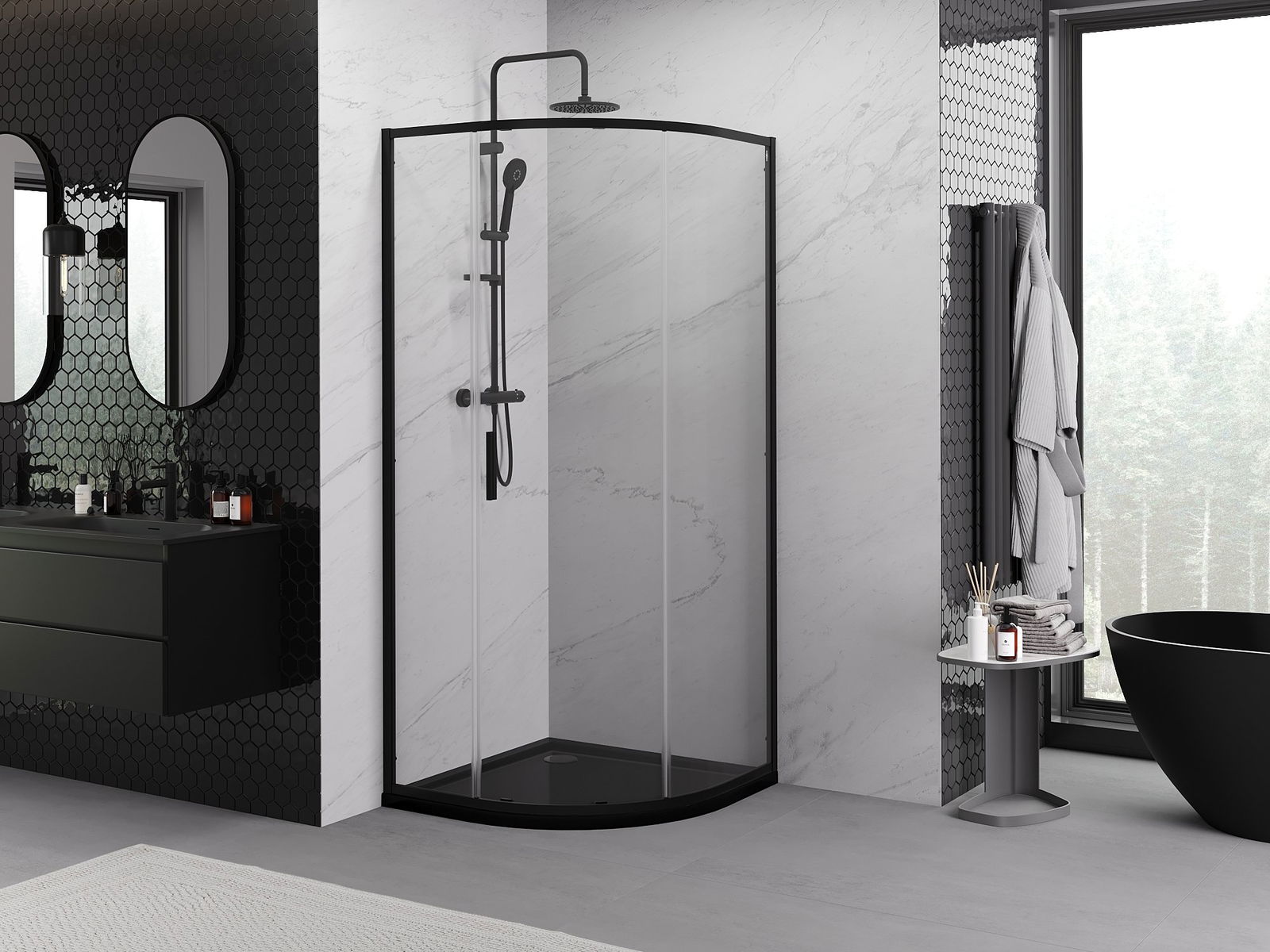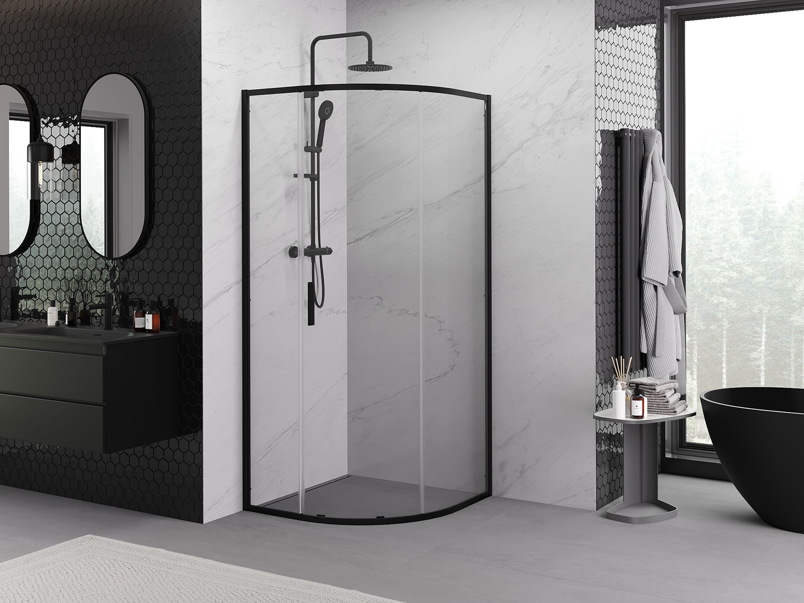 Mexen Exo полукръгла плъзгаща се душ кабина 80 x 80 cm, прозрачна, черна - 8131-080-080-70-00