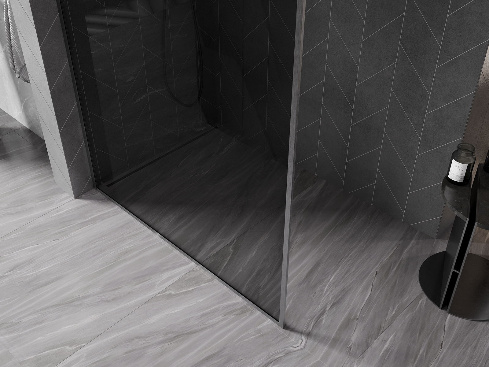 Mexen Kioto-F душ-кабина Walk-in с рамка 130 x 202 см, графит 8 мм, четкано сиво - 800-130-104-66-40
