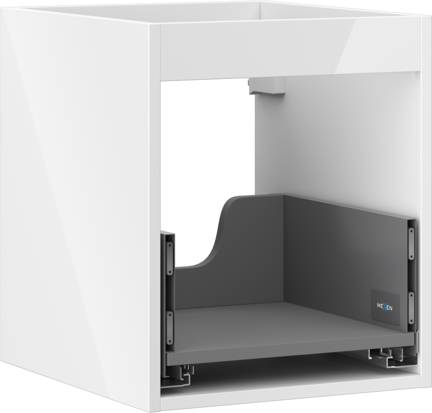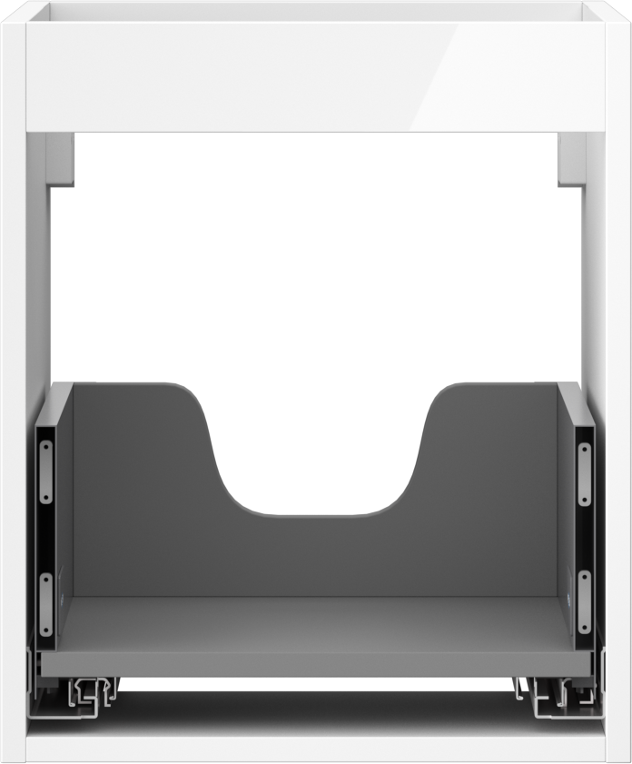 Изрезът в чекмеджето е проектиран по такъв начин, че да побере сифона, който е необходим в мивковите инсталации. Благодарение на това мебелът може да бъде монтиран напълно функционално, без да се налага отказване от пространството в чекмеджето заради инсталацията.