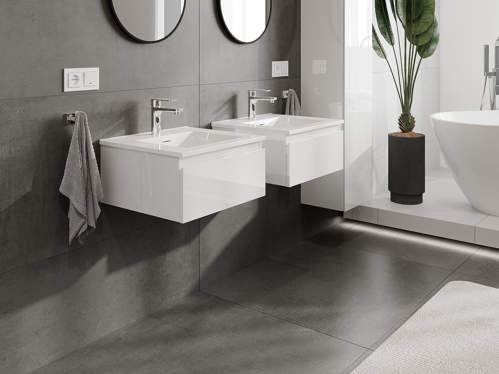 Нашите модулни мебели за баня могат да се комбинират в различни цветови конфигурации, което позволява пълна персонализация. Може да се избере както външният вид, така и функциите на отделните елементи, което позволява съчетаване на мебелите със собствените стилови и функционални предпочитания.