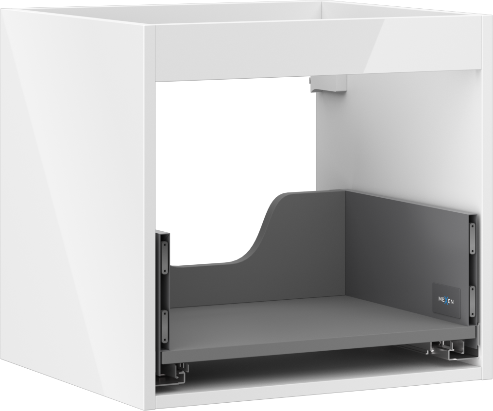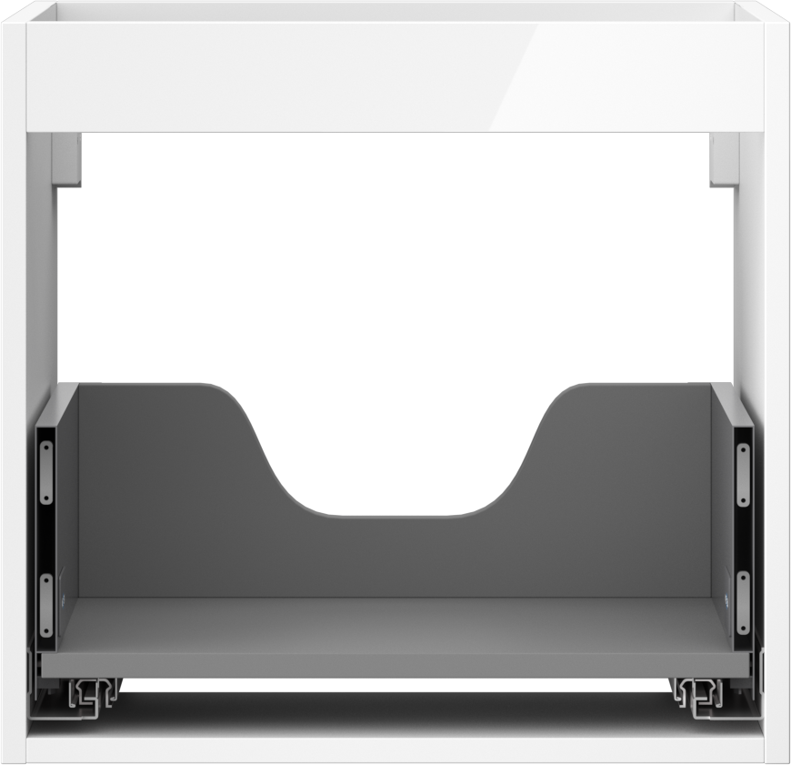 Изрезът в чекмеджето е проектиран по такъв начин, че да побере сифона, който е необходим в мивковите инсталации. Благодарение на това мебелът може да бъде монтиран напълно функционално, без да се налага отказване от пространството в чекмеджето заради инсталацията.
