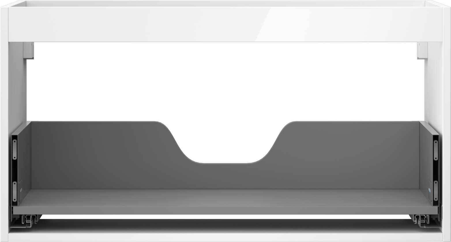 Изрезът в чекмеджето е проектиран по такъв начин, че да побере сифона, който е необходим в мивковите инсталации. Благодарение на това мебелът може да бъде монтиран напълно функционално, без да се налага отказване от пространството в чекмеджето заради инсталацията.